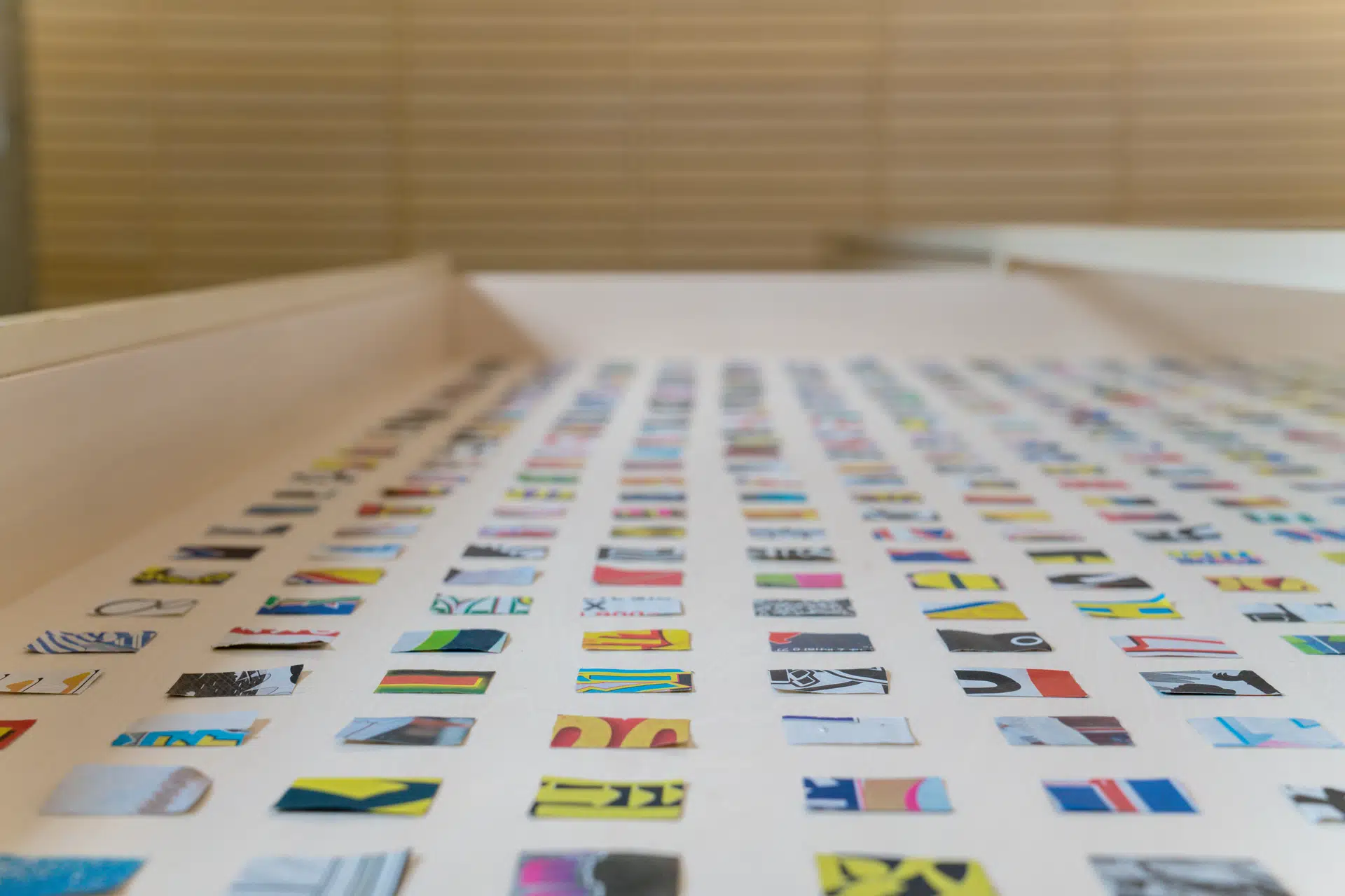 その中の一つ、スポーツ新聞をトリミングすることで生まれる大胆なグラフィックを約1200枚展示いたします。