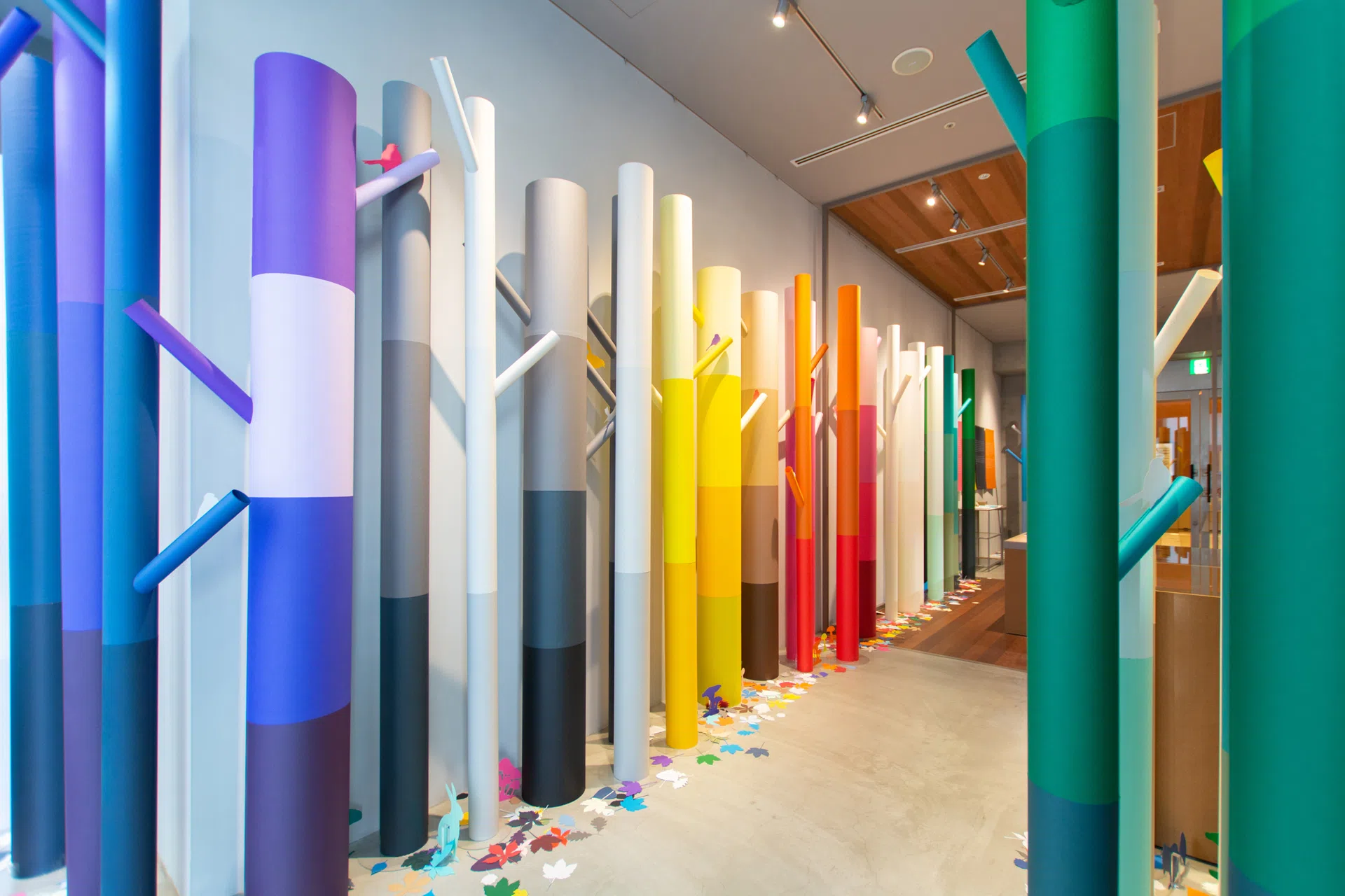 サスティナブルな素材としての紙の未来に光をあてた空間で、 55色もの色の魅力をぜひお楽しみください。