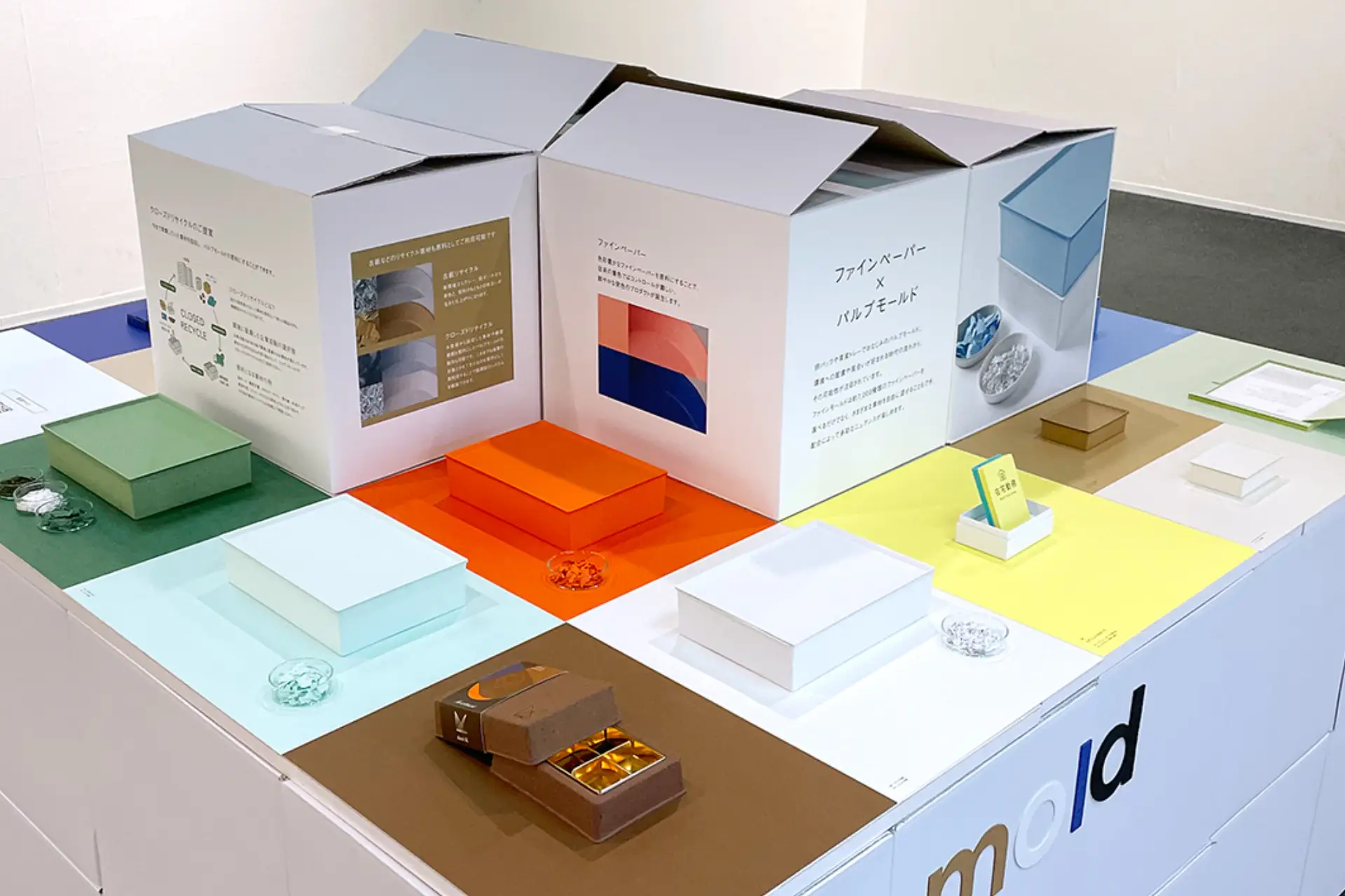 竹尾は会場の一角で、2つのパッケージ素材「ファインフルート」「ファインモールド」をご紹介いたします。
