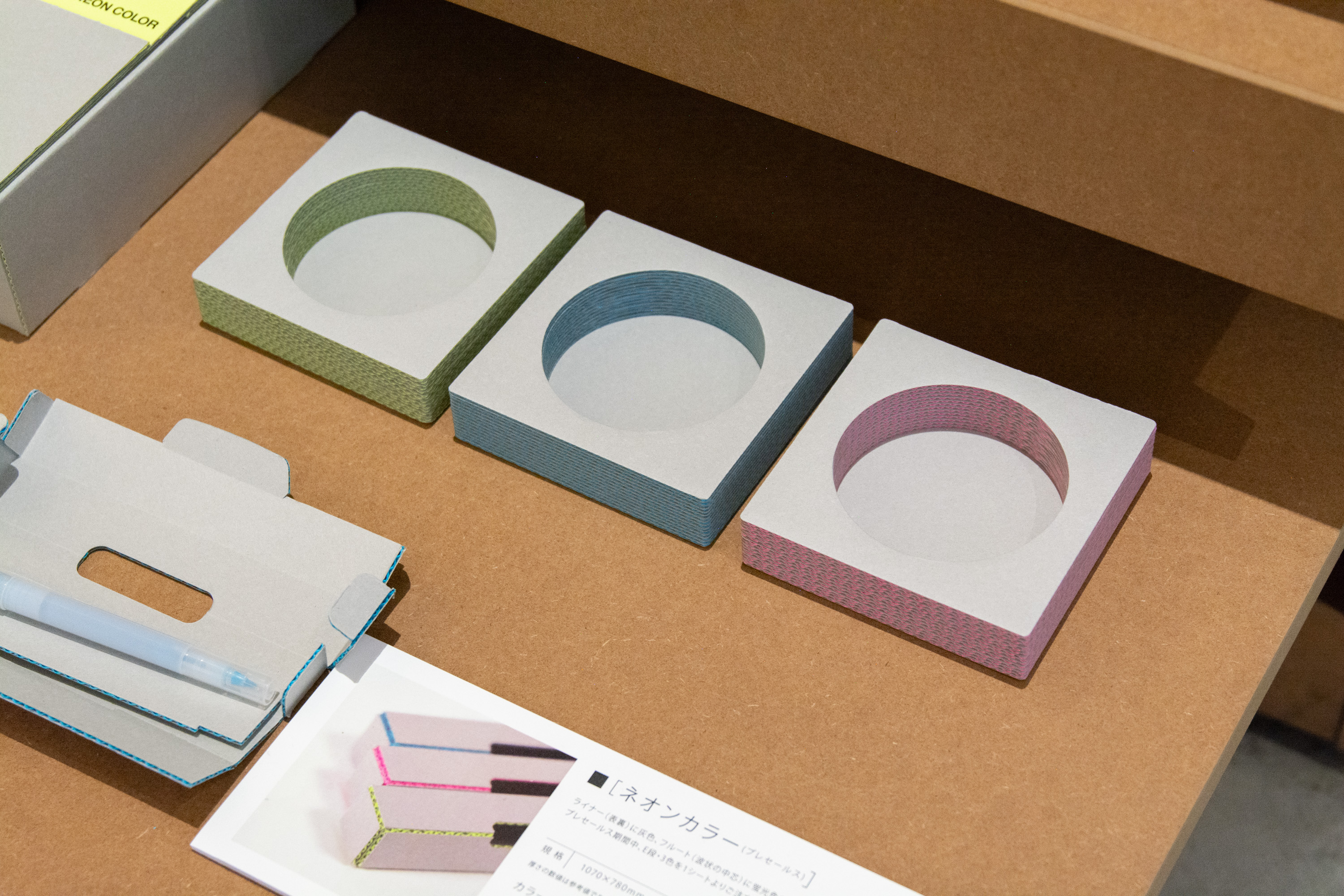 段ボールならではの波状の断面と、三層の色の組み合わせにより、パッケージの可能性を広げます。