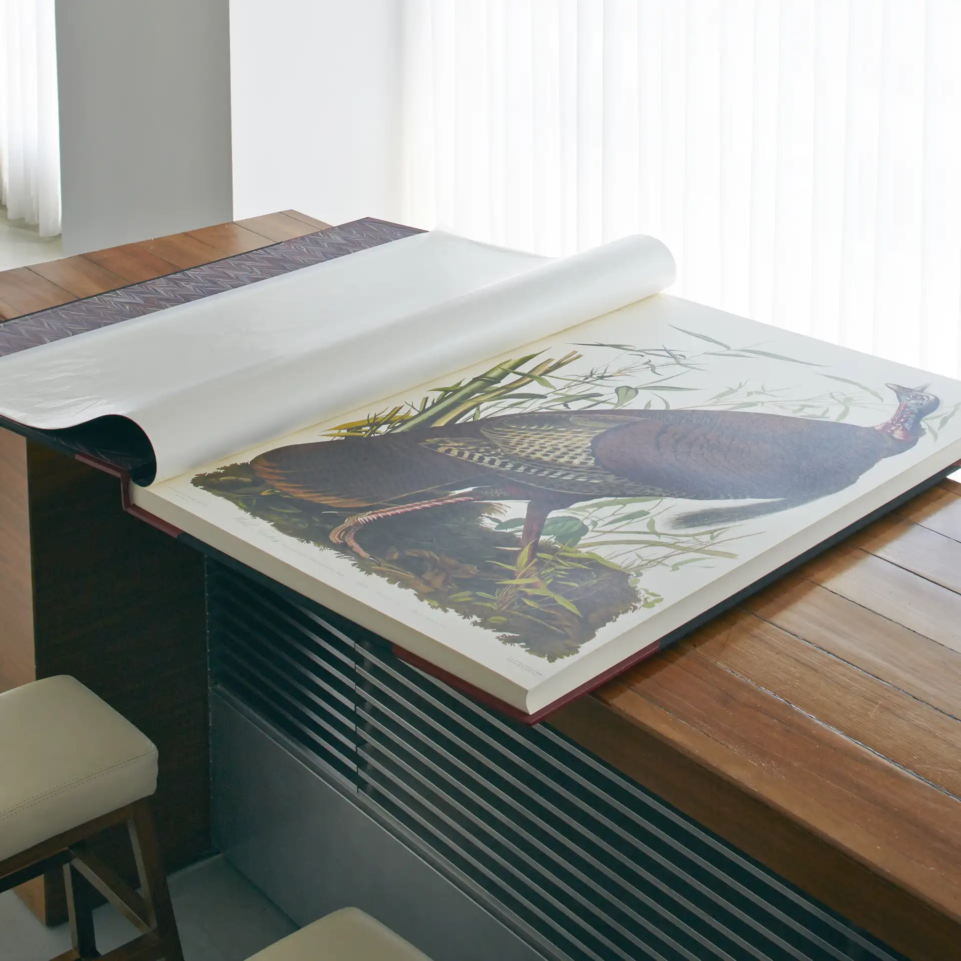 本の概念を超える大判サイズの紙に原寸大の鳥たちが