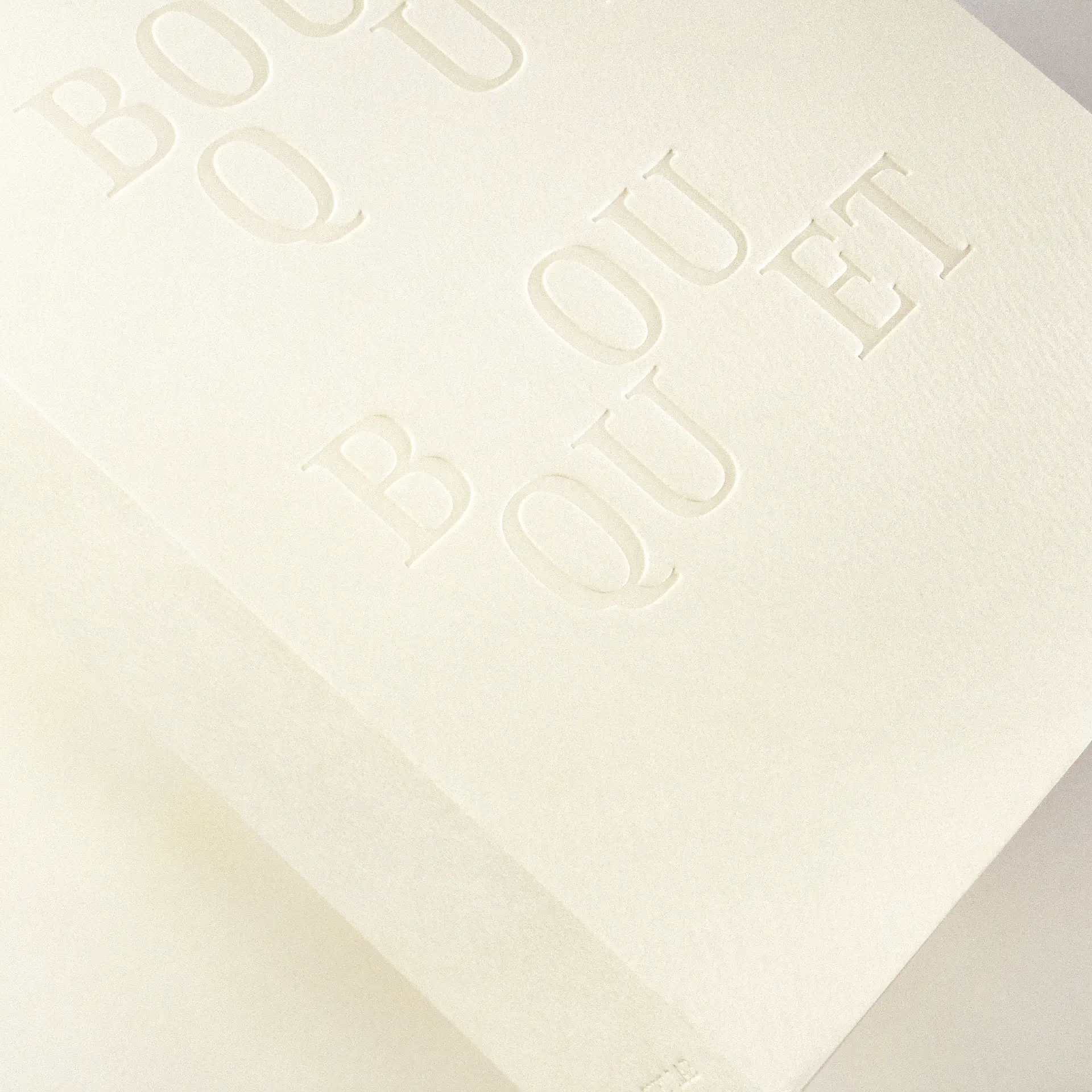 プリザーブドフラワーと音楽をギフトとして贈るためのフラワーベースと梱包箱のかたちを、ということで始まったので、当初は本にするつもりではなかったんです。でも考えていくうちに、花屋さんにないパッケージとして思いついたのが本という形状。普通は垂直方向に活けられている花を横から観賞しますが、束の厚みによって垂直に立てられるこのパッケージでは花を常に真上から鑑賞できます。形状の次に考えたのは色。花の色を魅力的に見せる方法を考えた結果、繊維自体に色がしみ込んでいる色紙を使って、全体をひとつの色の塊として見せる演出を思いつきました。先に花の種類が決まっていたのでコクがありながら花とのコントラストが適度にあるものということで、マーメイドを選択。マーメイドの美しい色は、花の色に対抗できる強さがあると同時に花との親しい関係がもてるんです。たぶん肌理の感じが合うんでしょうね。本のように見せるために小口が揃いすぎないようにするのに思いがけず苦労しました。上下はきれいな裁ち落としですが、小口は微妙な陰影が入るので裁ち落とし面よりも深みが出て、全体にコクが出るようになりました。今回は1色の塊ですが、いろいろな色の花と紙を用いて正面と小口がグラデーションで変化するような色のバリエーション展開も考案中です。