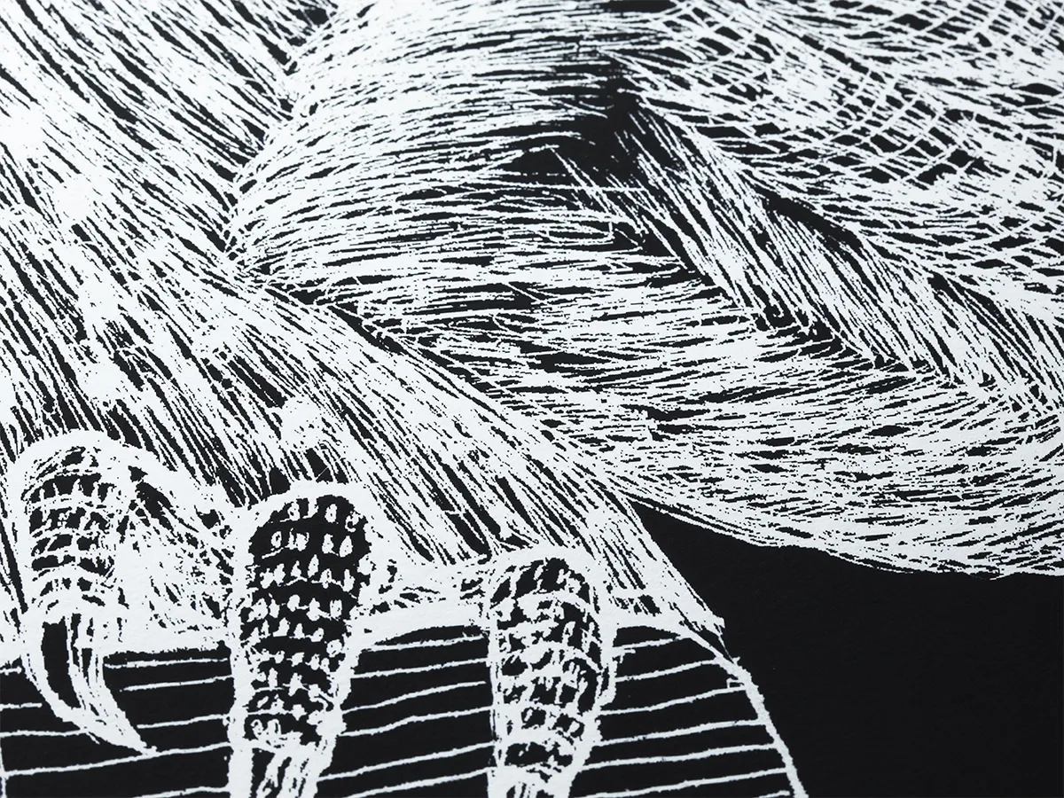 - 白はどうしても青みが出ますから、それを除去する作業は本当に大変だったはずです。「LIFE」シリーズで黒を使う場合には特定のインクジェット用画材を使うのですが、これは本当に黒が深く出る。この深みは他とは比べものになりません。黒が深い分、白が際立って非常に気に入っていたのですが、残念ながら生産中止になってしまうんです。