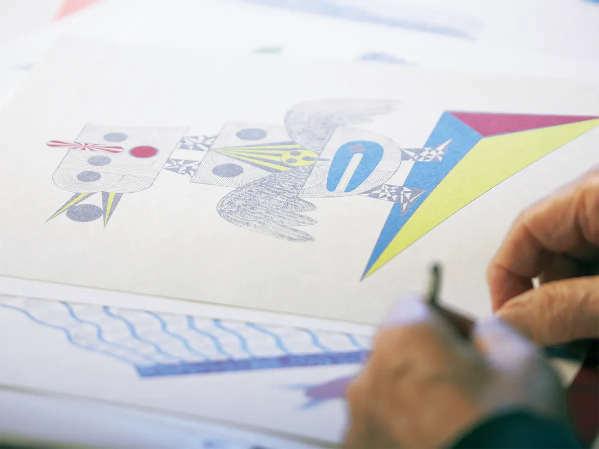 - 一見よく分からないかもしれないけれども、そういう積み重ねが表現の確かな奥行きになるんですよ。紙って、インキののりや発色の良さだけじゃなくて、そこから感じられる深み、テクスチャーが大事ですから。