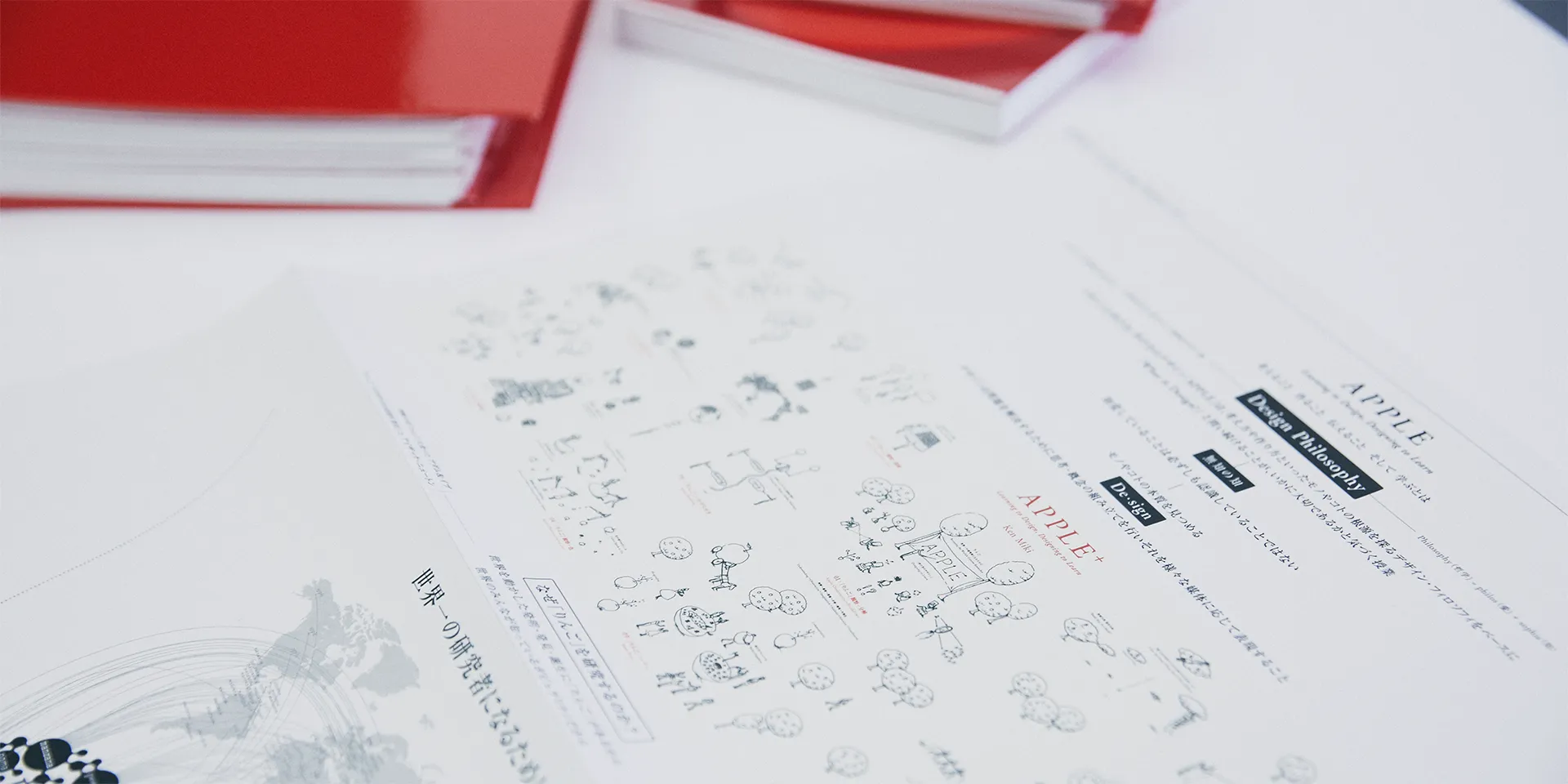 デザインの入口に立っている学生たちに、考え方やつくり方の根源を探ってもらいたくて考えたのが『APPLE』なんです。身体をいかした観察手法や自然界に潜む色の抽出、不自由さの中で見つけ出す物の真意などリンゴについていかに知らないかという「気づきに気づく」ためのプログラムです。ワークショップをするごとに自分を中心としたみんなの活動がファイルに集録されて、最終的に一冊の教科書にまとまる仕組み。こういう授業では、振り返りの作業がものすごく重要なんですよ。