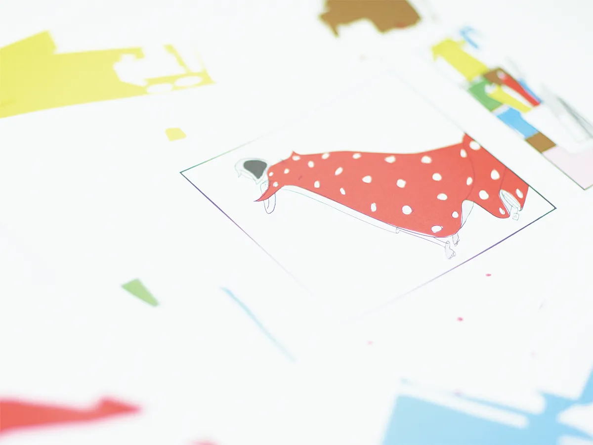 もちろん最終の原画は、ちゃんと原寸で描かれたとても綺麗なものでした。だから「この発色感はちょっと生かしたいな」と思ったんですね。しかし黒の表現は難しかったですよ。