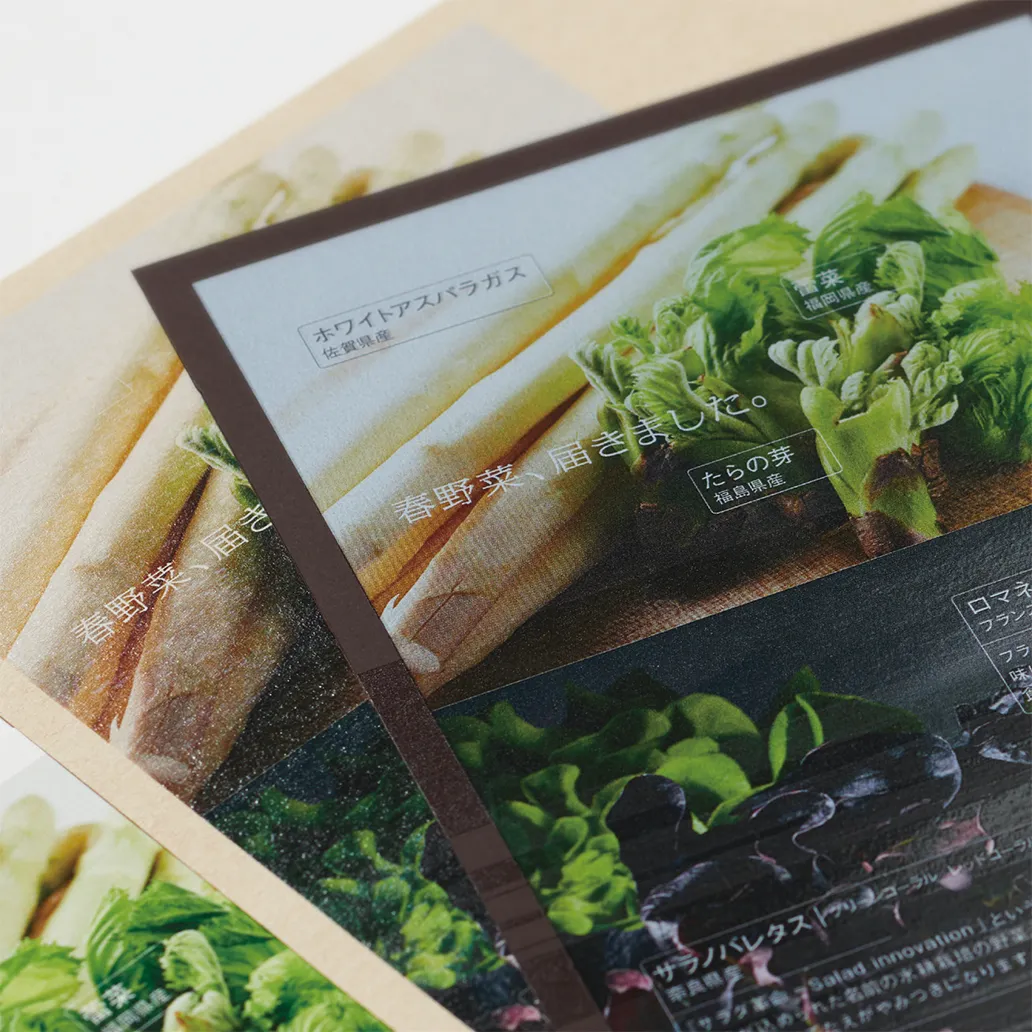 [透明な文字表現]クリアトナーを使ってニスで文字を印刷したような繊細な効果を得られます。