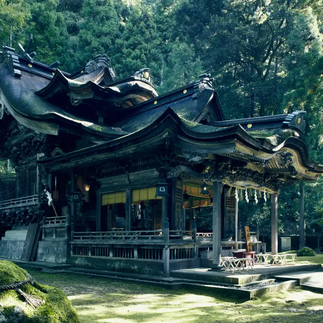その社殿は艶やかな苔に囲まれ、佇んでいる。