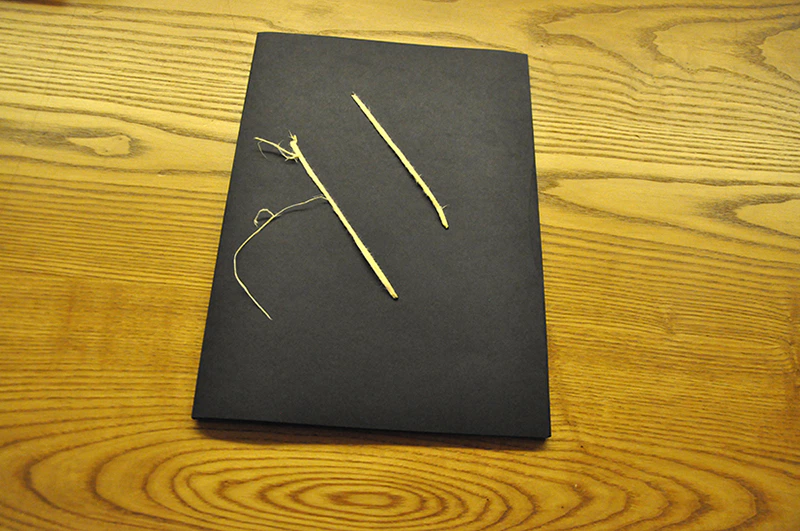 生成りの雁皮紙に五本の糸を漉き込んで、五線の作曲楽譜に見立てた作品『奏でる紙』を展示。葉書サイズ(1,800円限定50点)も販売。