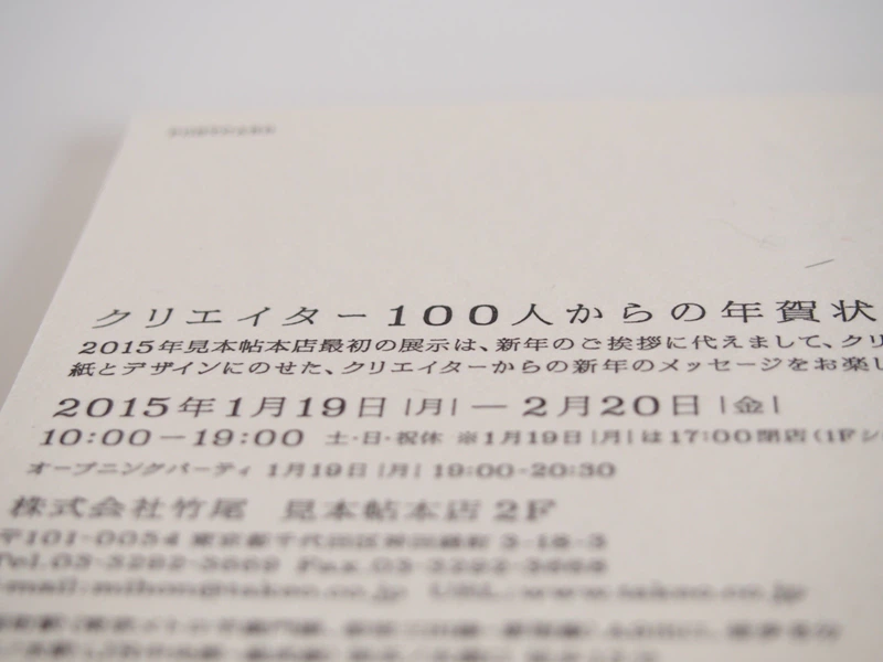 見本帖本店2F 展示 「クリエイター100人からの年賀状」展 vol.10