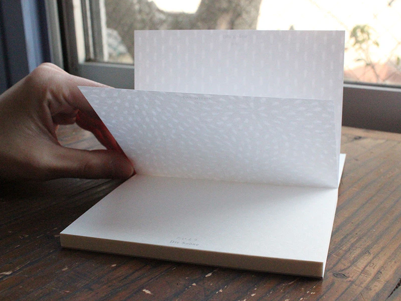 日本語とドイツ語でそれぞれ「太陽」「雨」「花」と記しています。
