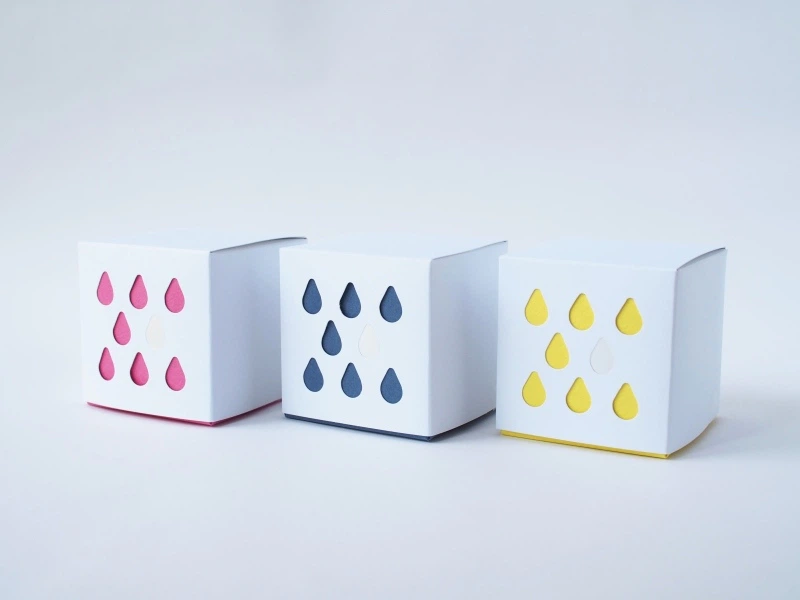 用紙の色選びは、各フレーバにも合うCIカラーの3色を選んでいるのですが、発色が良いのと、蓋を外した時に
