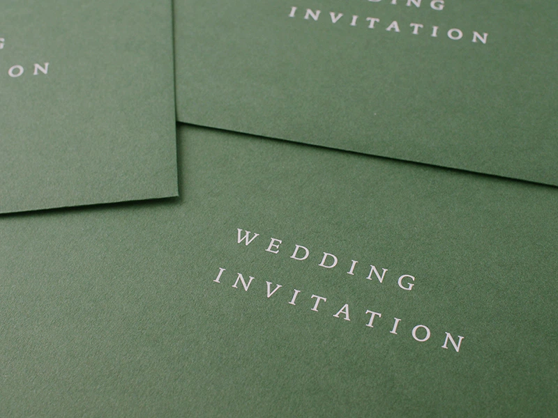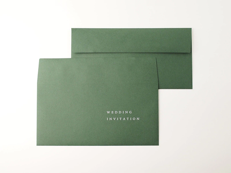フィリピン ボラカイ島でのリゾートウエディングの招待状の封筒です。海辺ではなく森での披露宴になるのでフォレストグリーンを選定。