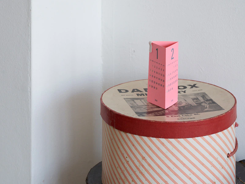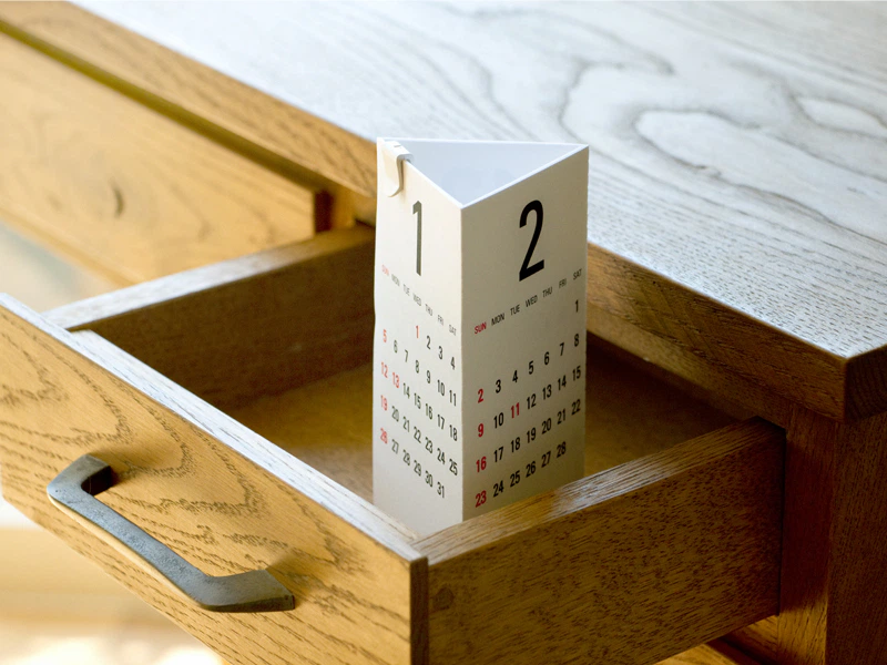 「リプラグ トライアングラー」は、三角に巻くことで常に3ヶ月分の日付を確認できるカレンダーです。くるくる回すだけで、3ヶ月間を一度にチェックできるコンパクトな形状。月ごとにミシン目が入っているので、過ぎた月は順に切り取ることができます。