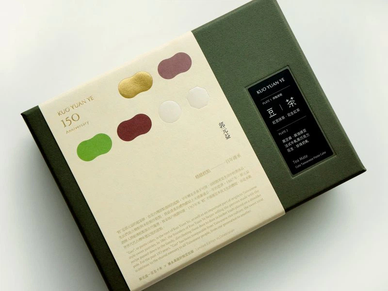由於這個產品是為台灣知名糕點品牌「郭元益」所設計的150週年紀念包裝,我希望消費者拿到這份產品時,能透過溫潤、文化感強的紙張的選擇、印刷工法以及盒子厚實的加工製作,感覺到一份精緻的心意。