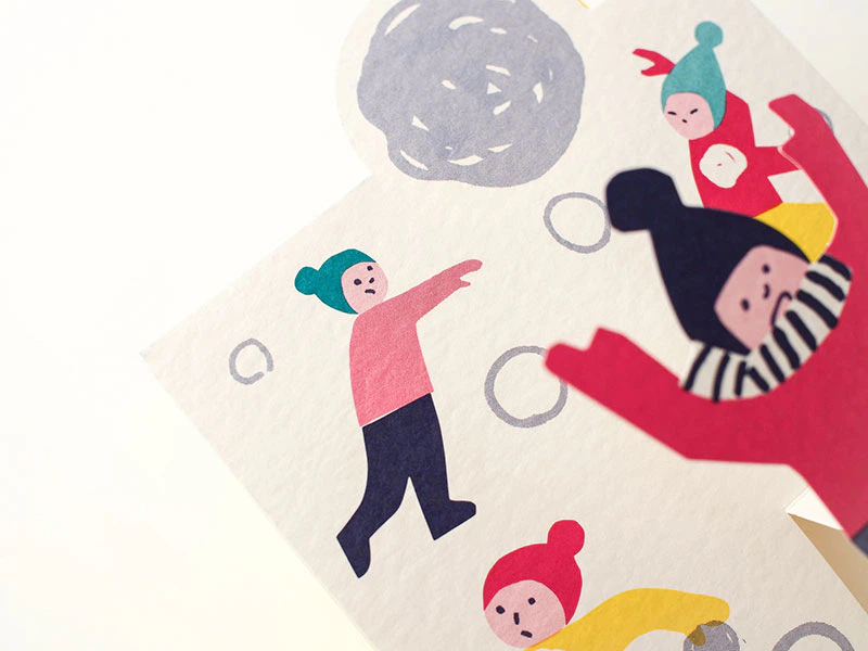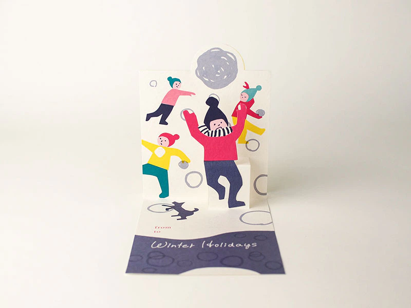 毎年1つ新作を加えつつ、しかけのあるグリーティングカードを制作しています。今年は雪景色を表現したくて「ハンマートーンGA スノーホワイト」を選びました。表面のやわらかい凹凸が雰囲気にぴったりでした。印刷はいつもに比べて鮮やかな色を選んだのですが、目に馴染む暖かな様子に仕上がってくれて嬉しいです。(idograph 井手さん)