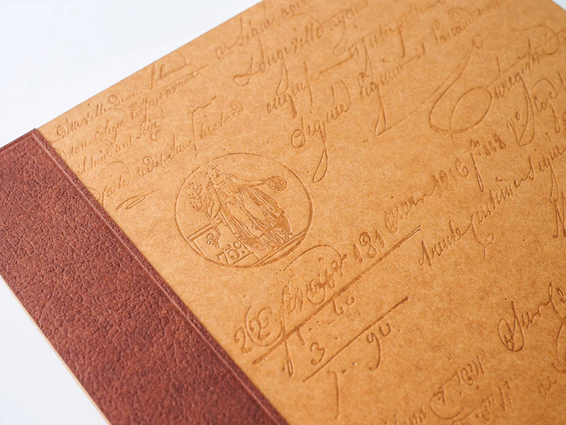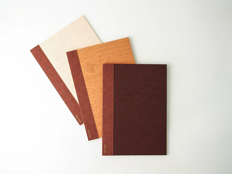 革に似た手触り感のあるコルドバとニューウエブロンカラーを選びました。特にコルドバはしっとりとした高級革のような触感があり、箔押しとエンボスの表現力も高く気に入っています。色の展開も面白く、3色とも制作させていただきました。(アコーダー株式会社 市山光一さん)