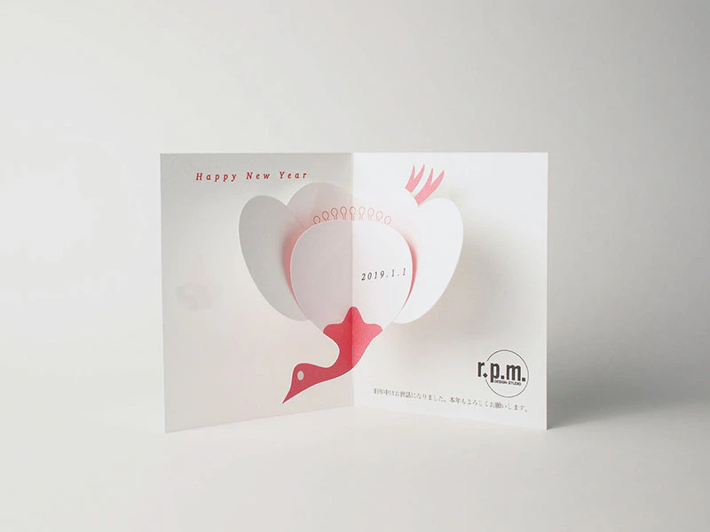POP-UP式の絵本やカード、セールスプロモーションツールを制作されている、r.p.mデザインスタジオさんからいただいた年賀状をご紹介いたします。