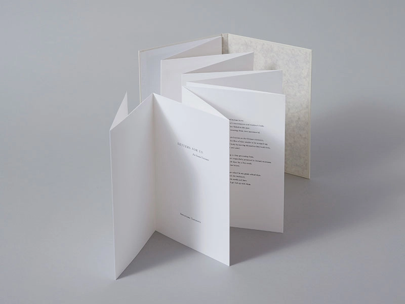 本づくり協会が発行する会報誌『Book Arts and Crafts』の企画から生まれた詩集です。書体設計家の鳥海修さんが谷川俊太郎さんのために書体をつくり、それを受けて谷川さんが書き下ろした詩が「私たちの文字」です。印刷は嘉瑞工房で何種類かの紙で試し刷りをし鳥海さんに見ていただきました。「文字の細いところと太いところの表情が豊かに出ている」ということで、ヴァンヌーボVが選ばれました。(美篶堂 上島明子さん)
