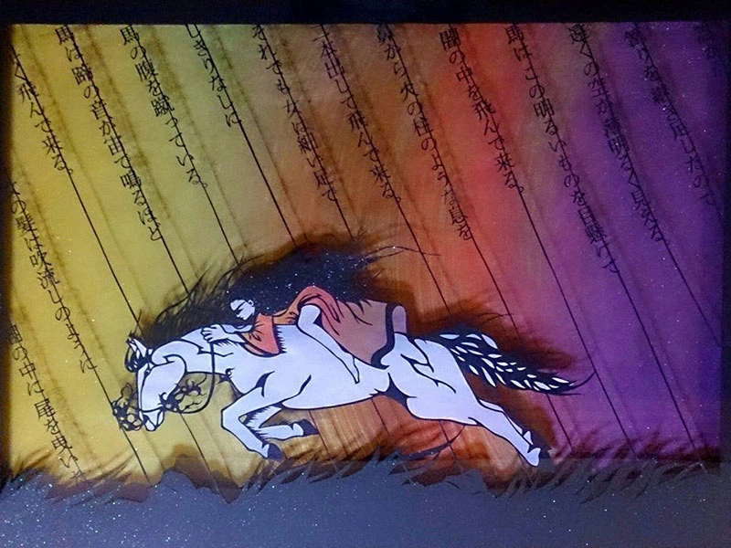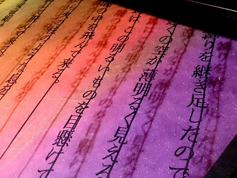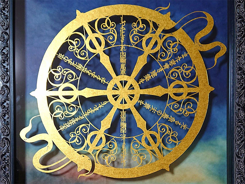 背景の和紙になじむ金泥のようなニュアンスの紙を探しており、なかなか求める質感の紙が見つからないでいましたが、ハイピカE2Fがイメージにしっくり当てはまり、一目で決めました。