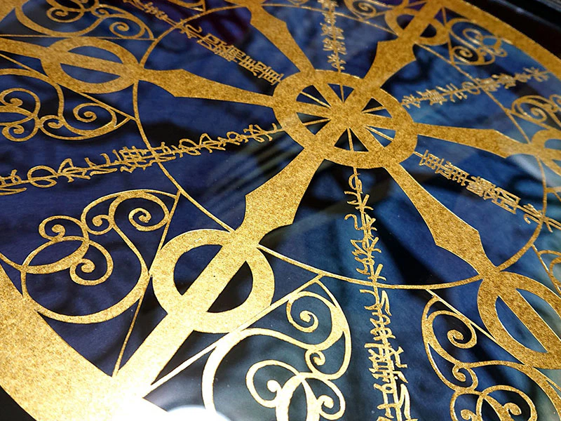 また、中に文字が入る作品は最初から裏表が決まるのでラメが片面の80kgを、文字が入らない作品は紙を切り終えてから裏表を決めるのでラメが両面の130kgを、と使い分けています。(小川真央さん)