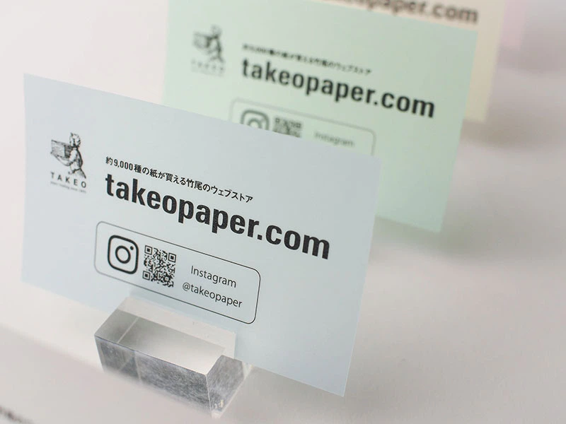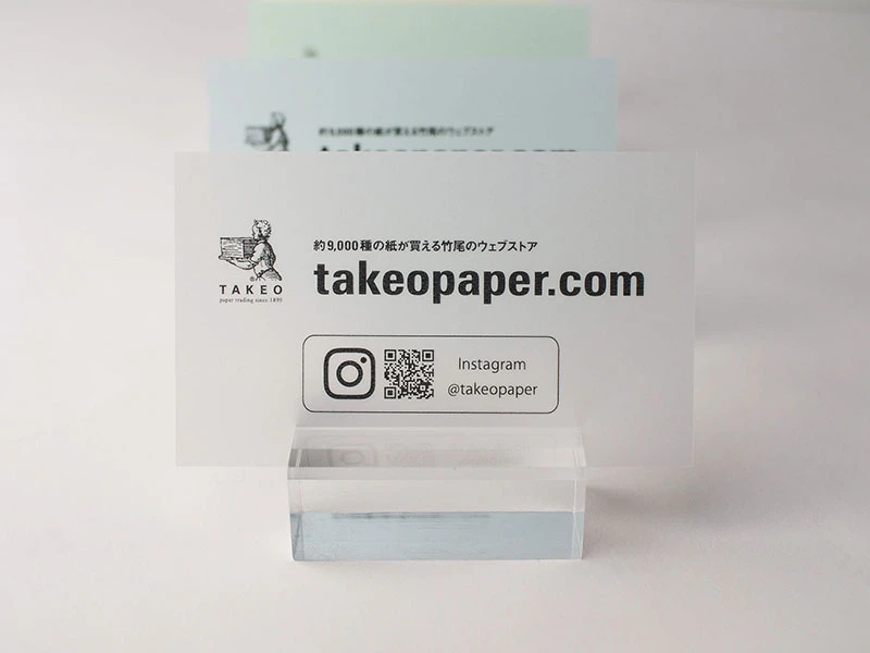 透明感のある紙でショップカードを作成したら夏らしくて涼しげな印象になると思い、クラシコトレーシング-FSから5色を選びました。透明紙でもショップカードを作成することができますので、ご参考いただけましたら幸いです。(株式会社竹尾 takeopaper.com)