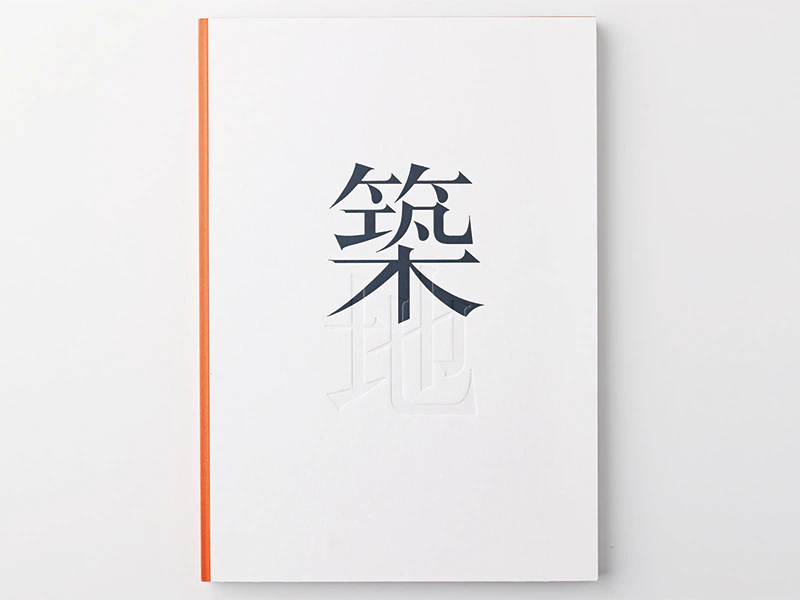 B4判128ページで重みのあるドイツ装の表紙には、和の情緒と風格のあるわたがみを選び、タイポグラフィーの空押しを効果的に使い、かつては海だった築地の歴史を暗に示しています。(長澤昌彦さん)
