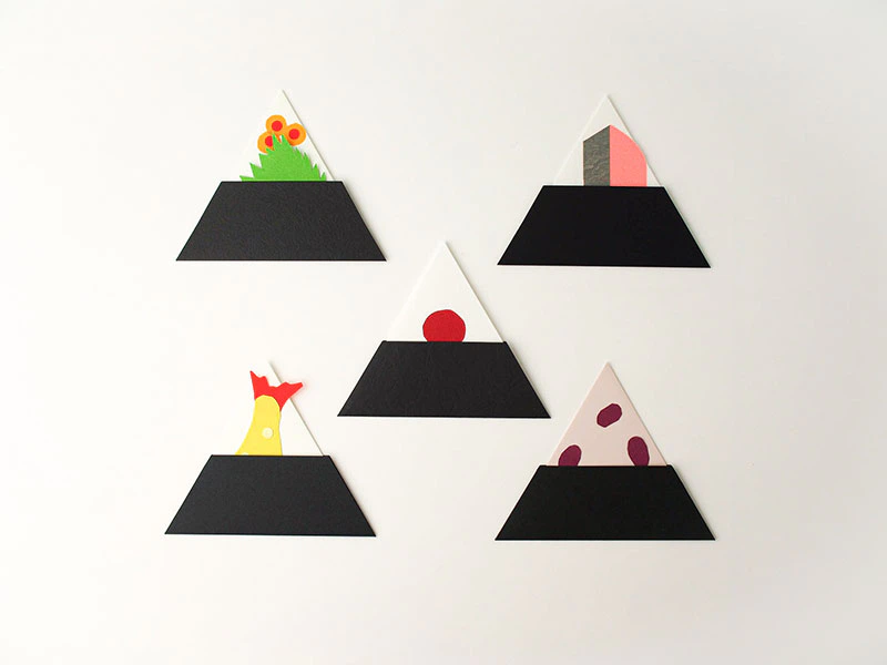 紙の「質感」や「存在感」は、切り取った形や大きさによって、突然輝きを放つことがありますが、まさに今回のおにぎりのカードは、それぞれの紙が生き生きとしていて、とても気に入っています。(田中千絵さん)