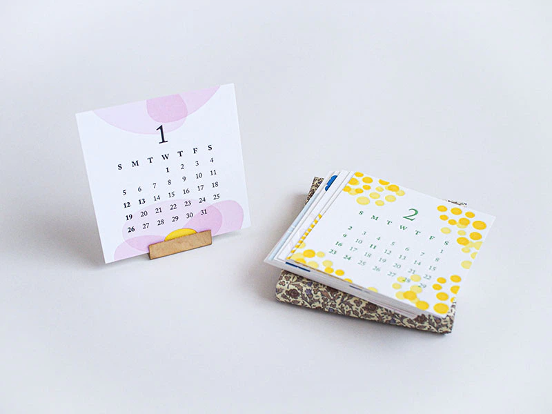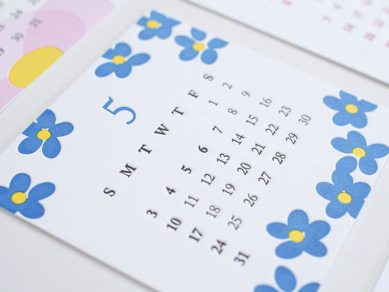 2020年版レタープレスカレンダーは「お花」がモチーフ。ひと月毎に変わるお花の季節感と、活版印刷ならではの同系色オーバープリントや、印圧調整によるへこみ具合の変化を取り入れた意欲的なカレンダーに仕上げています。