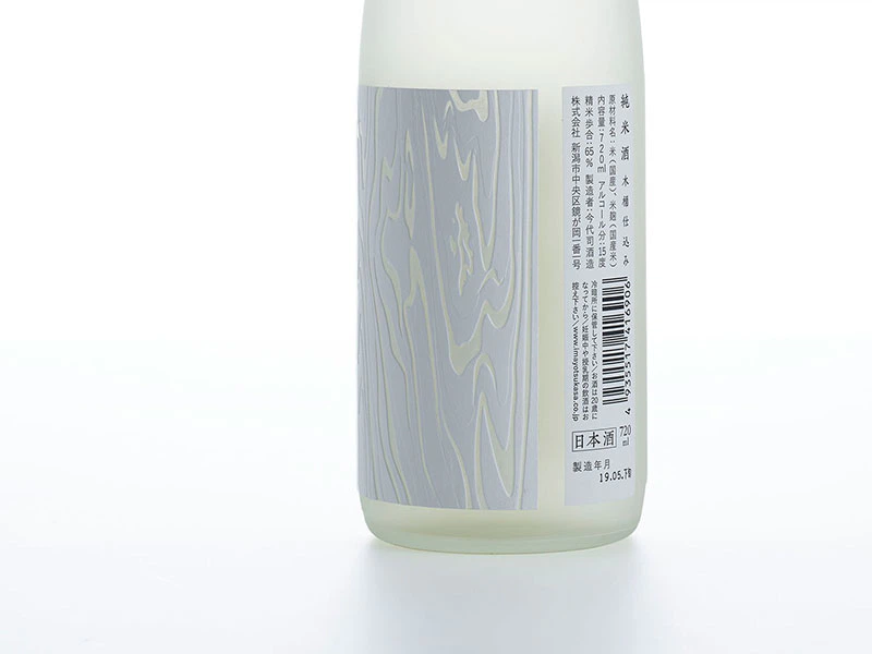 ラベルデザインは、実際に今代司に納品された木桶の杉の木目を、一部忠実に再現しています。