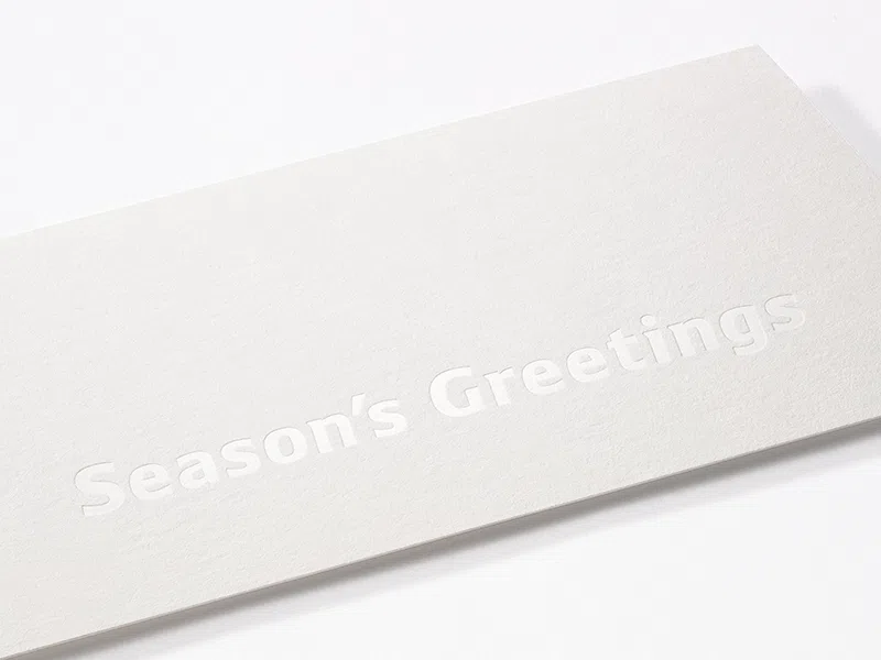 オフセット特色3色印刷、箔押し(白)、抜き加工(トムソン刃)、開口部の変形裁ち落とし(ピナクル刃)、折り、糊付け