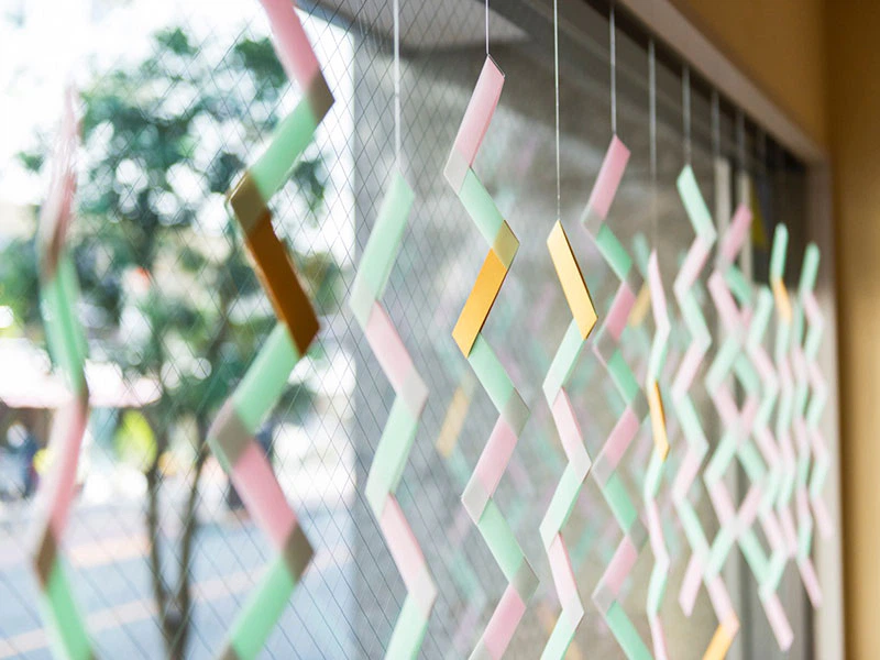 春夏通して6ヵ月の展示期間となるため、軽やかさの中にしっかりとアクセントとなる用紙を求めて、スタードリーム-FSを選びました。