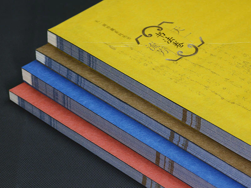 『天一流芳/天一閣珍蔵系列叢書』第一集の絵画、書道、扇面、拓本の四巻は中国の伝統的な装幀である包背装(ほうはいそう|二つ折りで袋状にした本文の背を一枚の紙で包む形式)を採用しています。第二集の竹刻、瓷器、文房、璽印の四巻は西洋式の角背ハードカバーの装幀で、表紙はテーラーを採用しています。テーラーの表面は絹のような繊細な肌理と織物のような柔らかい手触りがあります。天一閣蔵書楼は明代に設立され400年以上の歴史があり、中国で現存する最も有名な蔵書楼の一つです。蔵書と安定した豊かな生活環境は不可分で、天一閣のある中国江南地域の経済は絹織物の生産と貿易によって支えられてきたため、テーラーの特徴と本のテーマがぴったり合いました。