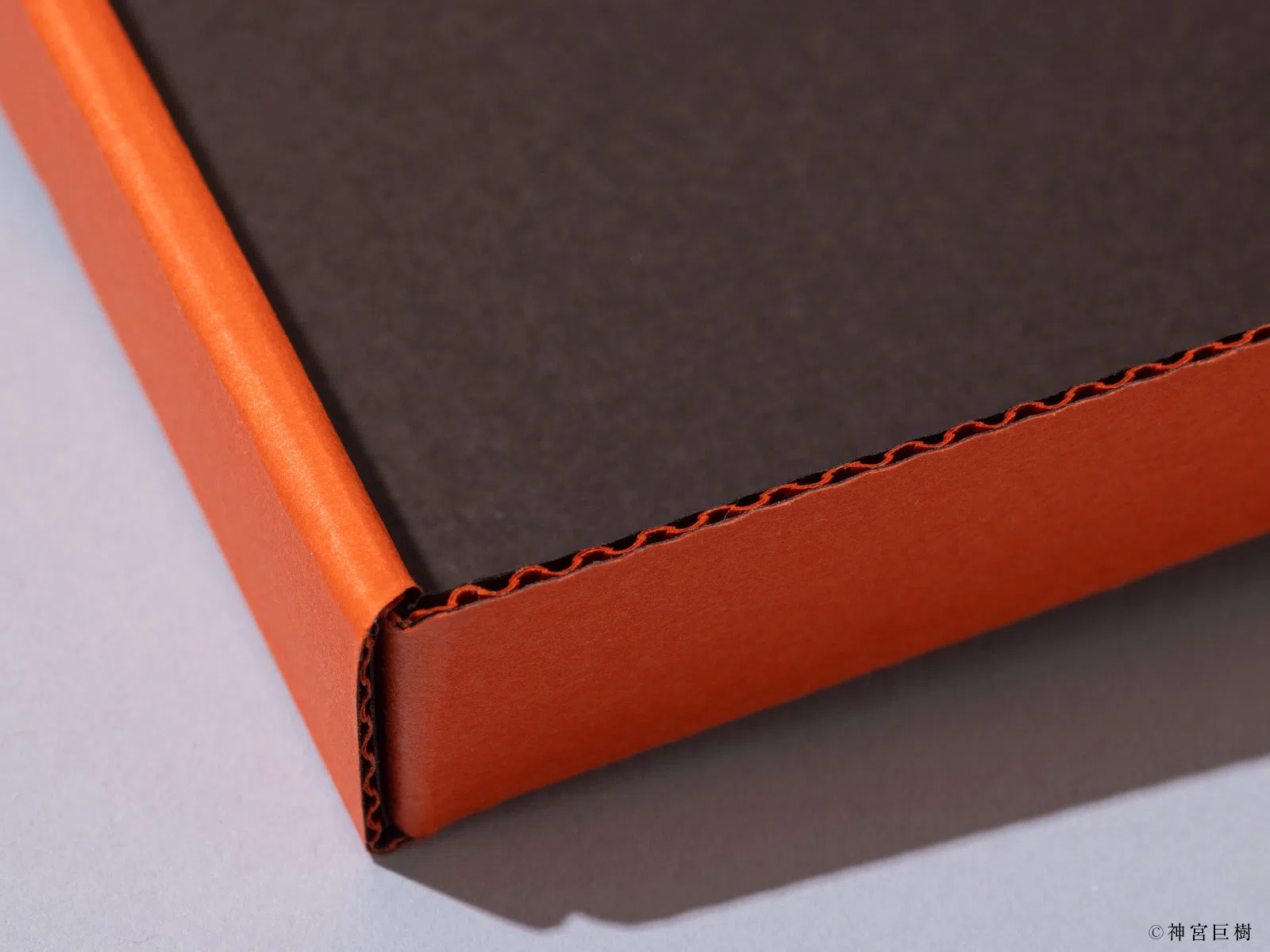 ファインフルート(Eフルート 極・焦茶/マンダリン/極・焦茶)と、見返しと同色の用紙を貼合