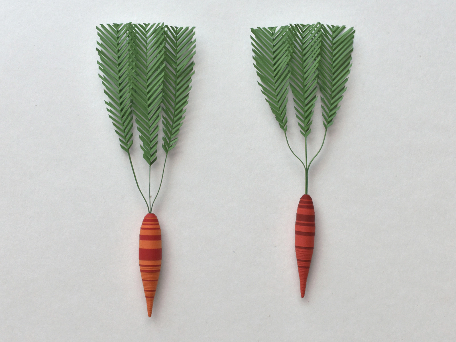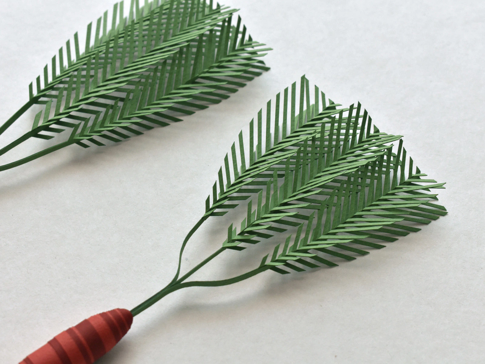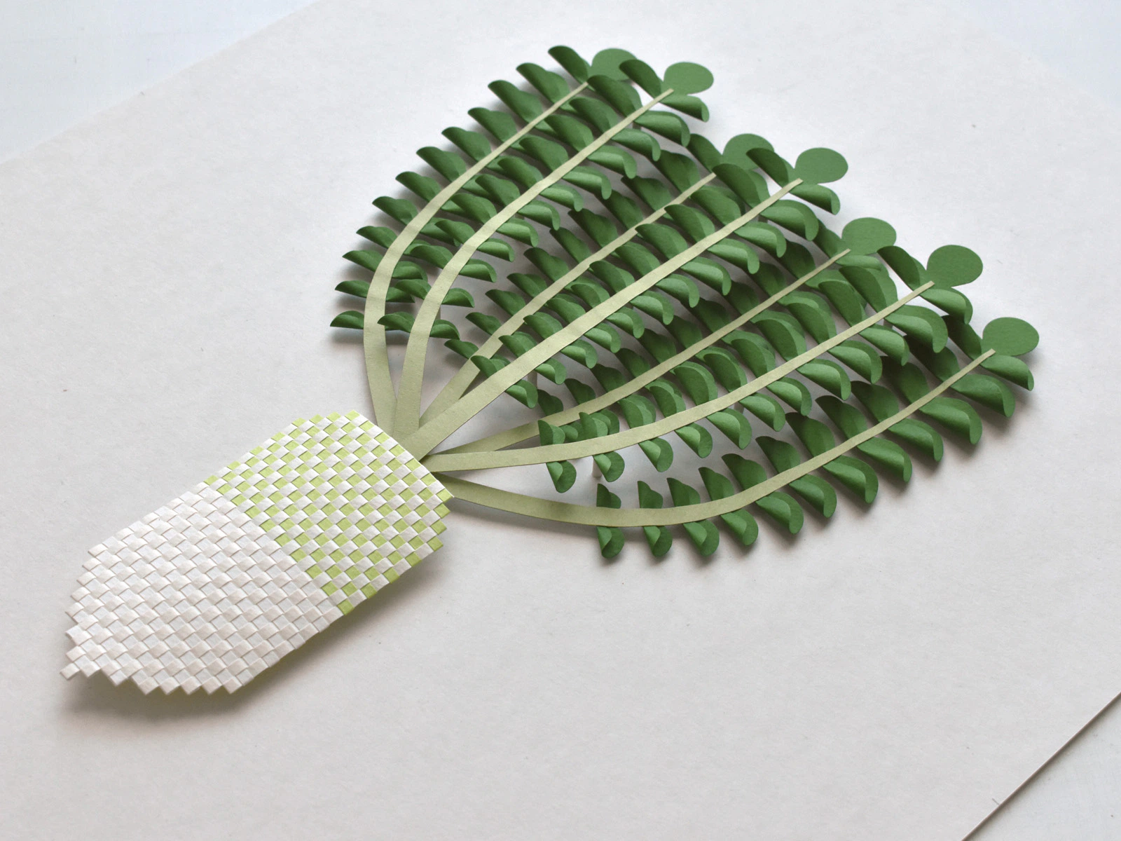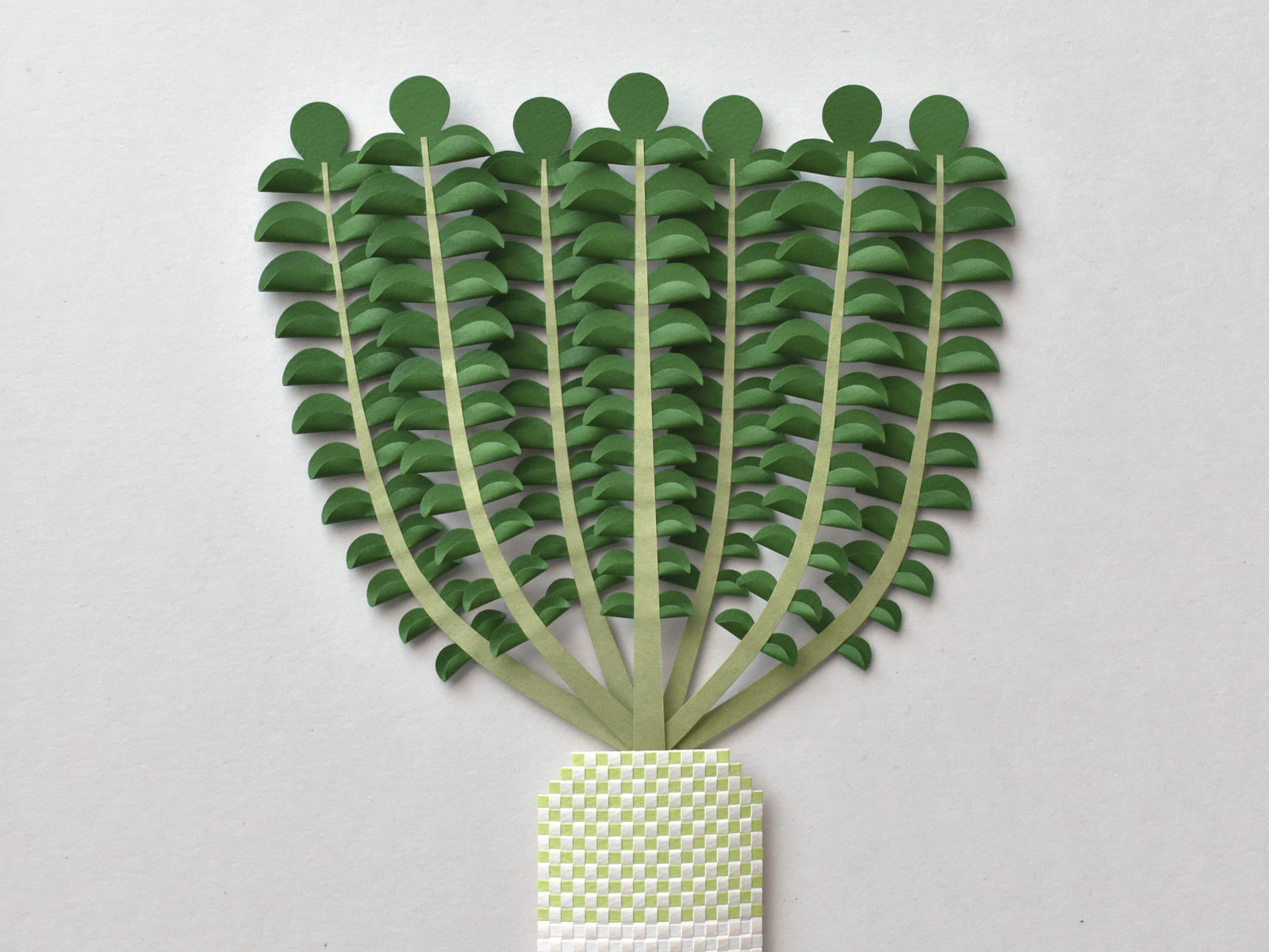 モチーフの色や構造など思い描く表現方法を紙で試作しながら選びます。マーメイドは適度な強さがあり細工がしやすい上に、表面の反射が少なく、色がしっかりと見える感じがします。ビオトープGA-FSは深みのある色合いと質感が好きで選びます。ヴィンテージ ゴールドは今回初めて作品に使用。紙の独特の輝きと「ムギ」が黄金に輝く様を重ね合わせました。(長尾昌枝さん)