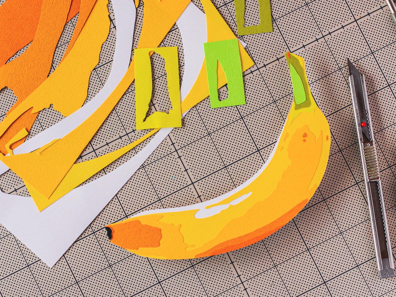 オンラインレッスン 「CLASS101(クラスワンオーワン)」 にて、ペーパーコラージュ「ラグドール」「バナナ」他作品を作れるクラスを開講中。