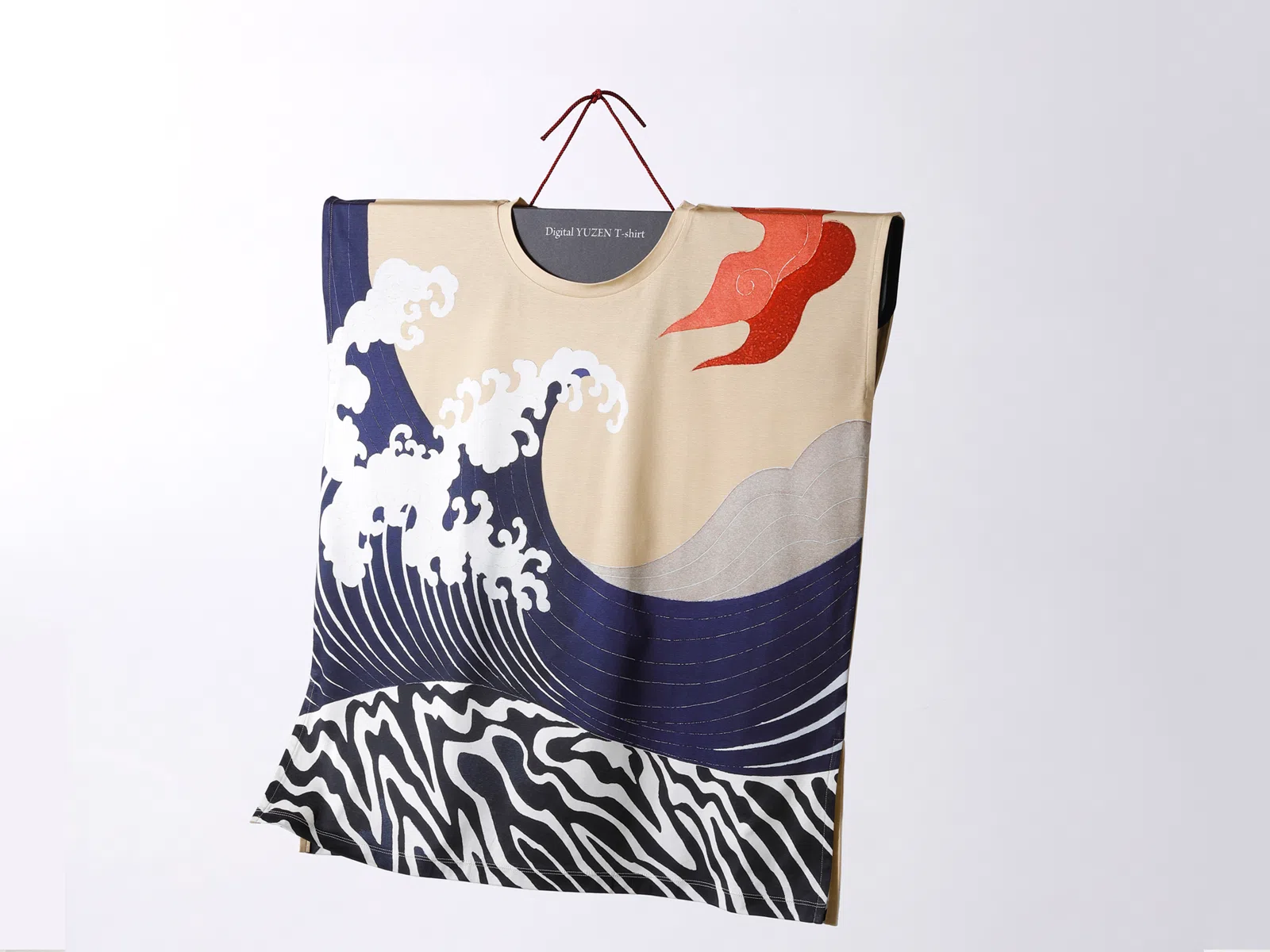 「デジタル友禅Tシャツ」は、高価な伝統工芸品である手描友禅をもっと気軽に愉しむことができるように企画したsome-pri(そめプリ)のプロダクトです。「手描友禅×デジタル」のシリーズで、友禅職人が着物と同じ工程を簡略せずに描いた原画を、デジタル捺染によって複製しています。