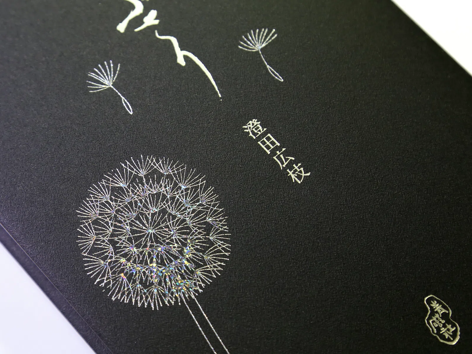 箔押し(タンポポ:村田金箔 HK034 ホログラムホイル、書名他:村田金箔 シルキーシャンパン)
