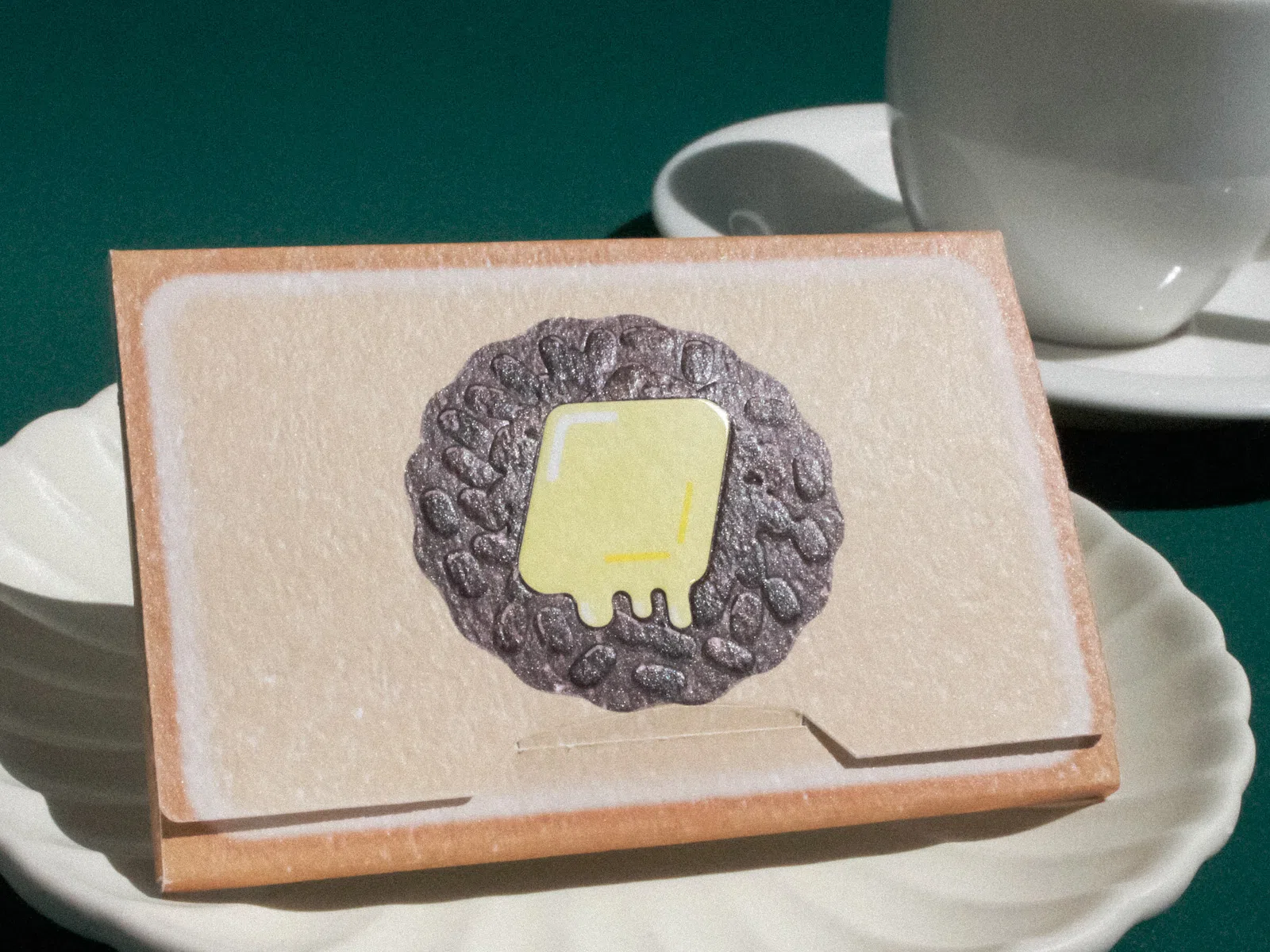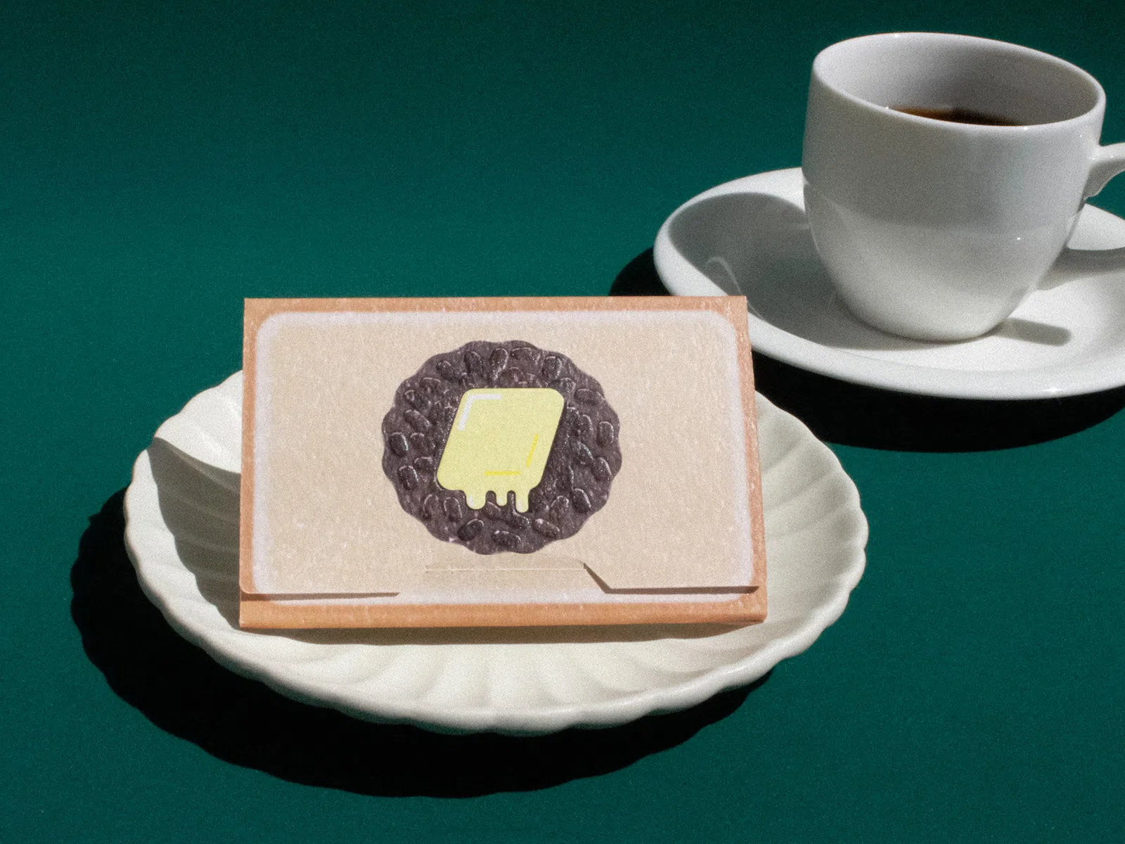 とにかく食パンに近い質感のしっとりとしてエンボス感のある紙を探していたところ「ジェラードGA」にたどり着きました。また、中のカードは小倉トーストのお供のコーヒーをイメージした「マーメイド」のコーヒービーンズ(茶色)とスノーホワイト(白)の2種類のカードが入っています。こちらの商品は当初、地方で行われるイベントの限定商品としてその地域ならではの食べ物をモチーフにデザインしたものです。イベント終了後も販売してほしいとのお声があったため、ご当地カードケースセットというシリーズでその後も販売をし続けています。(一九堂印刷所 四條さん)