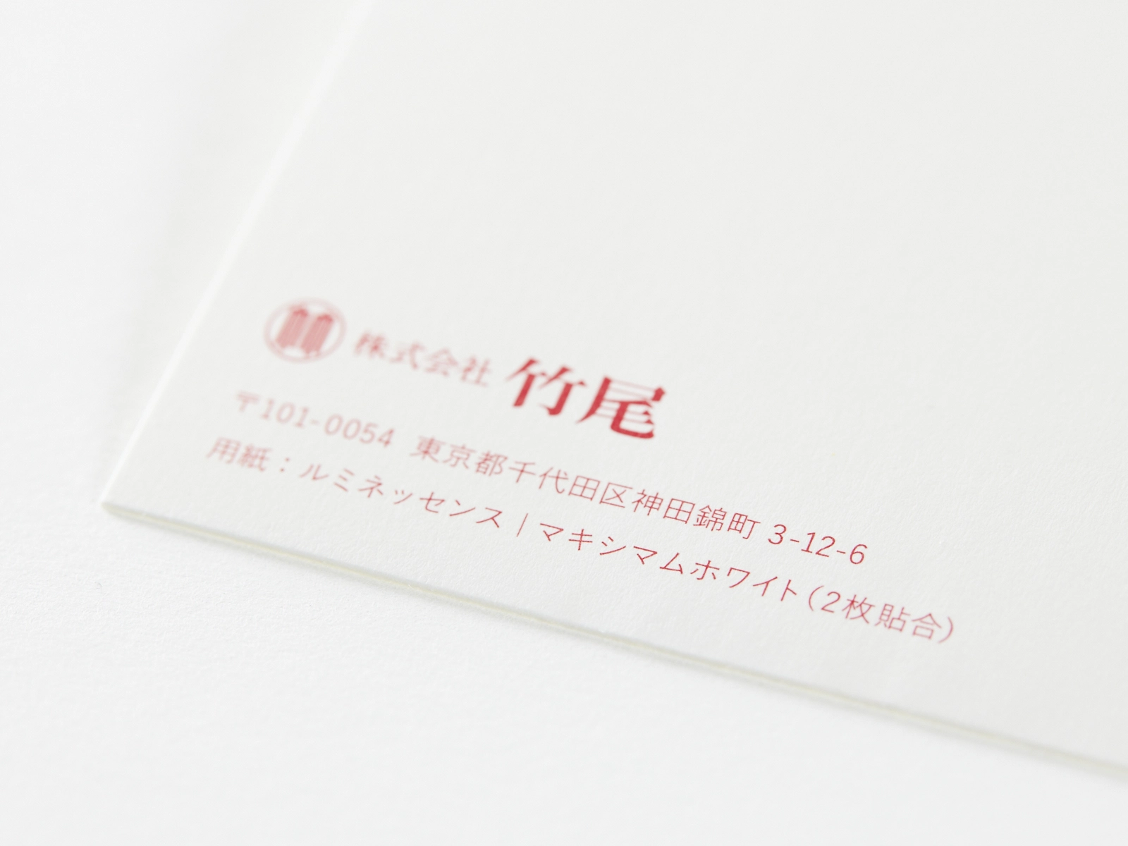 紙は平滑で気品のある白の「ルミネッセンス マキシマムホワイト」と、ソフトな質感であたたかみのある色の「ロベール ホワイト」の2種類で制作し、質感と色の幅を持たせました。(株式会社竹尾 企画部)