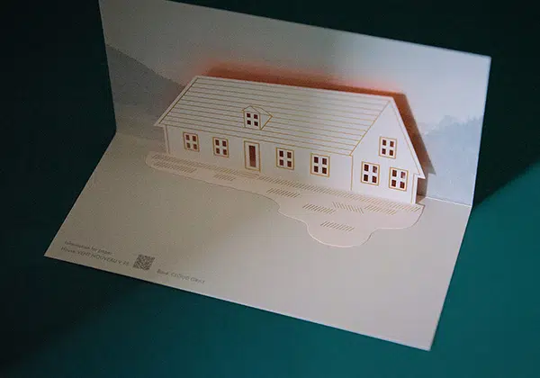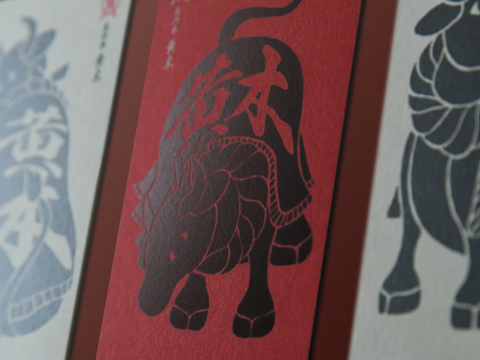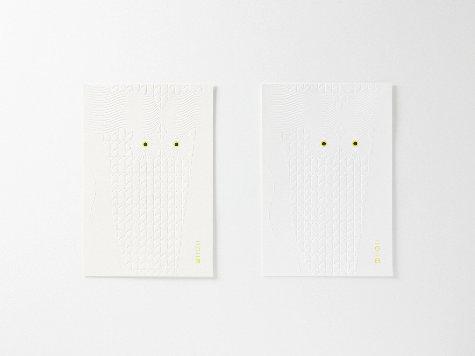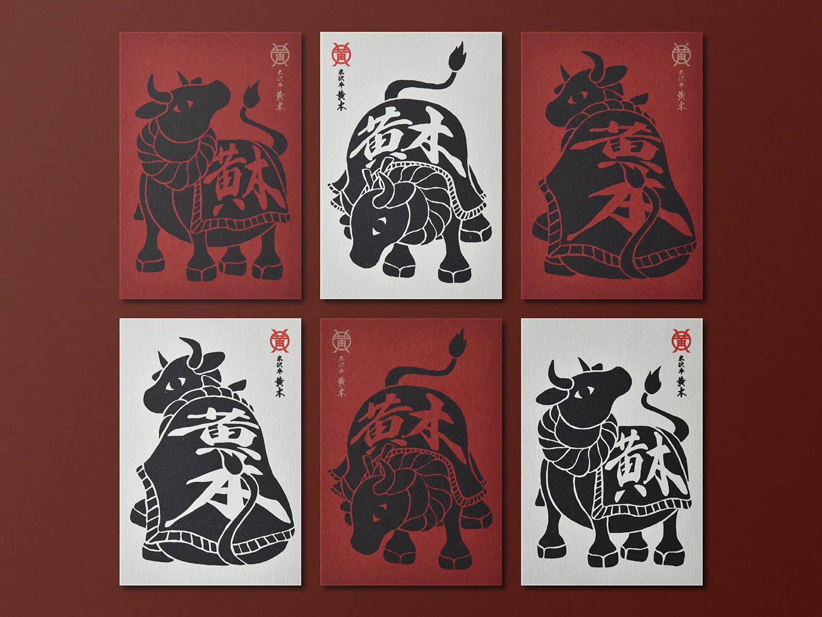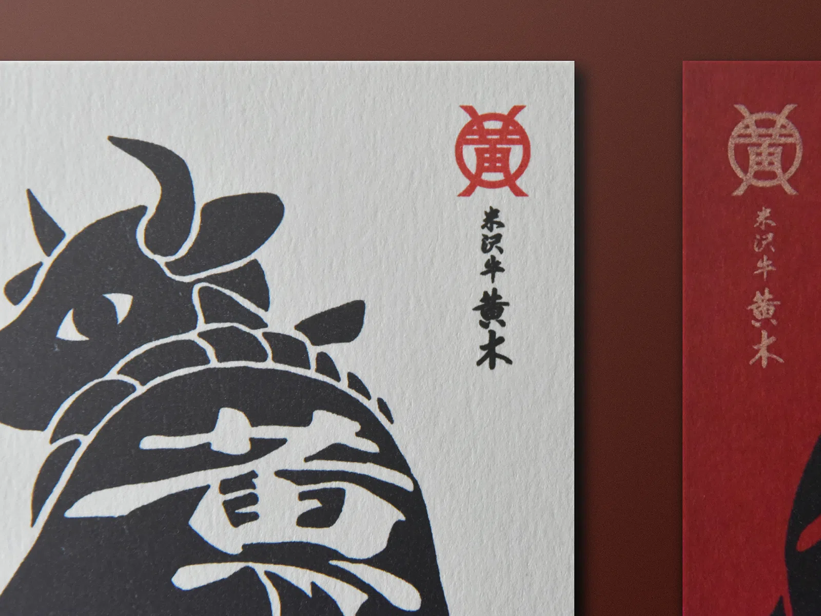 米沢牛の肥育・販売・加工品製造・レストランを展開する米沢牛黄木の制作物。事業の象徴である和牛を版画調にしたビジュアルを作成し、自然かつ力強い質感を持った紙「ビオトープGA-FS」を採用。黄色がかった白のコットンホワイトでナチュラル感を演出し、グリーティングカードでは、企業のブランドカラーに近しいベリーレッドも使用。ポスター・グリーティングカード、どちらも創業100周年の伝統と歴史ある印象を目指した。(井上 悠さん)