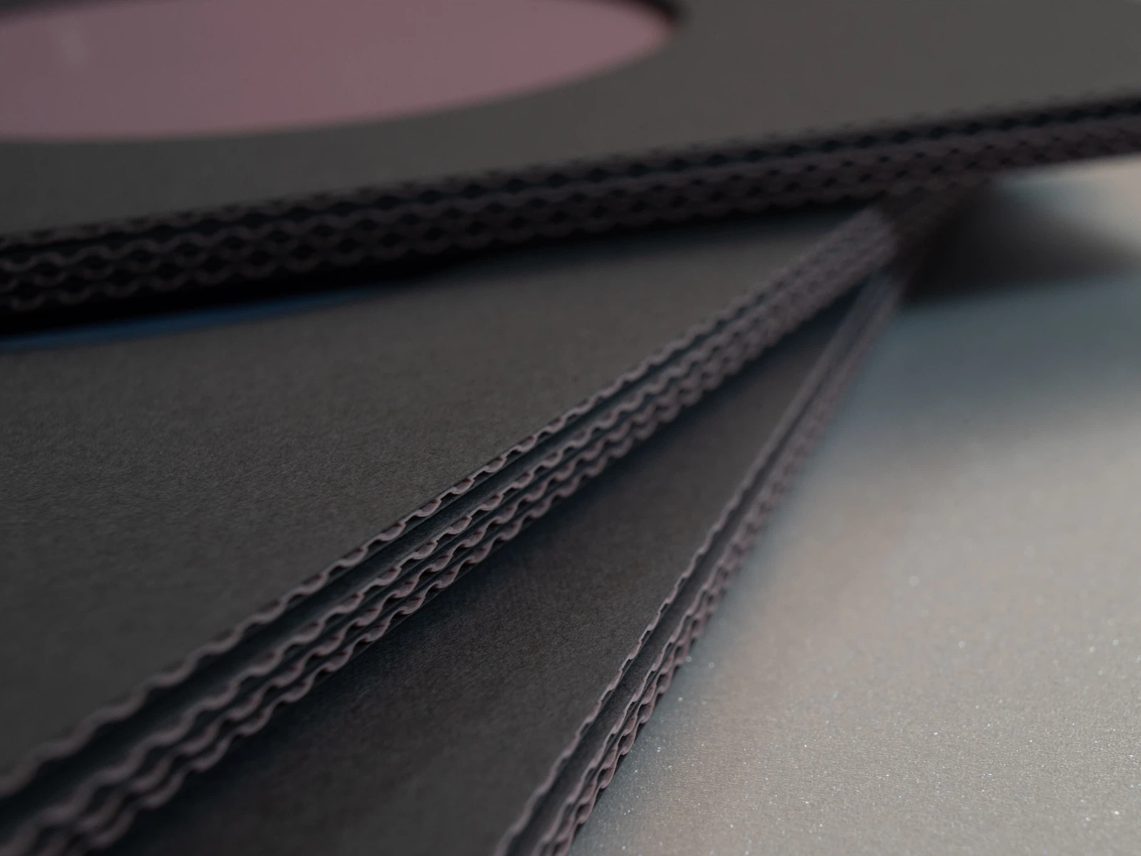 自分がディレクションした映像作品を納品するパッケージをつくるにあたり、紙を選ぶ段階でフルート構造と表面と中芯の色の組み合わせで表情が変わる特性を持つ「ファインフルート」には、梱包時の強度、軽さとデザイン性を併せ持つ力があるのでは、と考えました。パッケージそのものには印刷をせずに、ポケットに挟みこんだ紙に文字情報、グラフィックデザインを施すつくりにしました。結果、コストダウンもでき、挟みこむ紙の質感とグラフィックデザインが異なるバリエーションをつくりだすことに繋がりました。(石本夏帆さん)