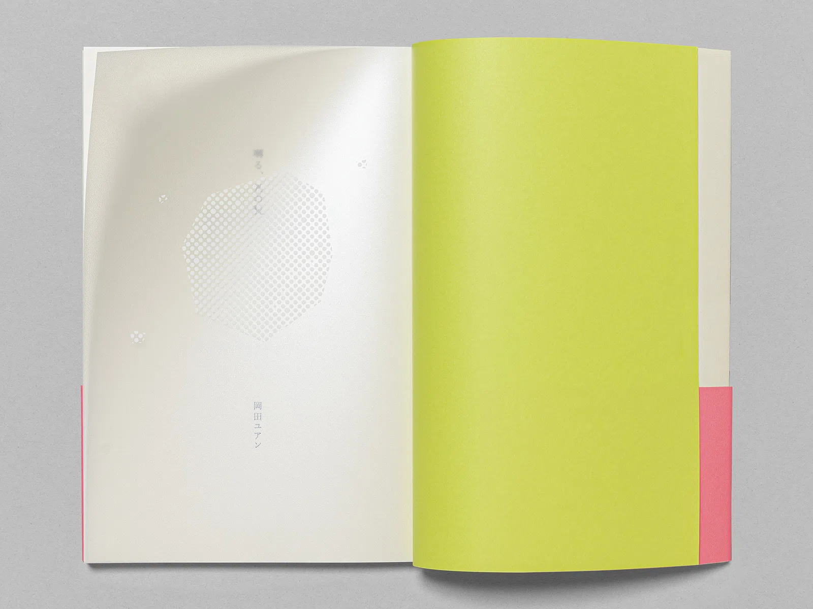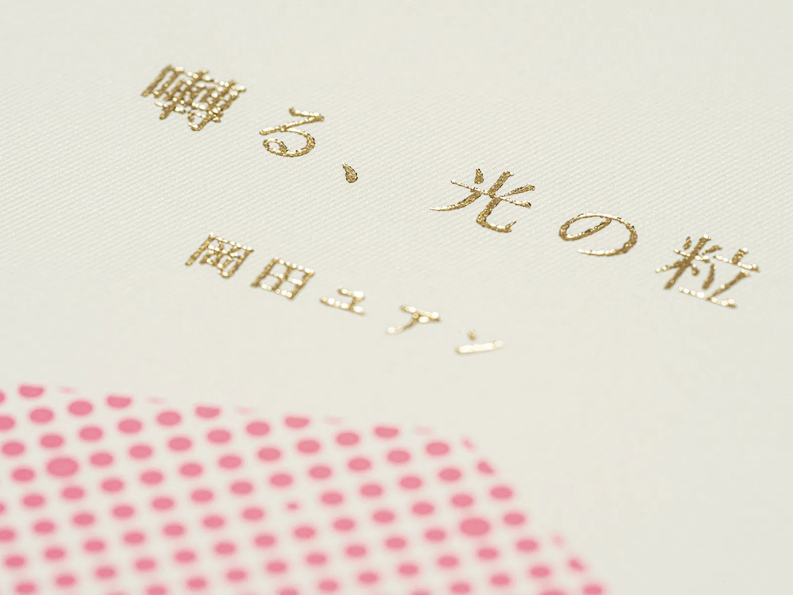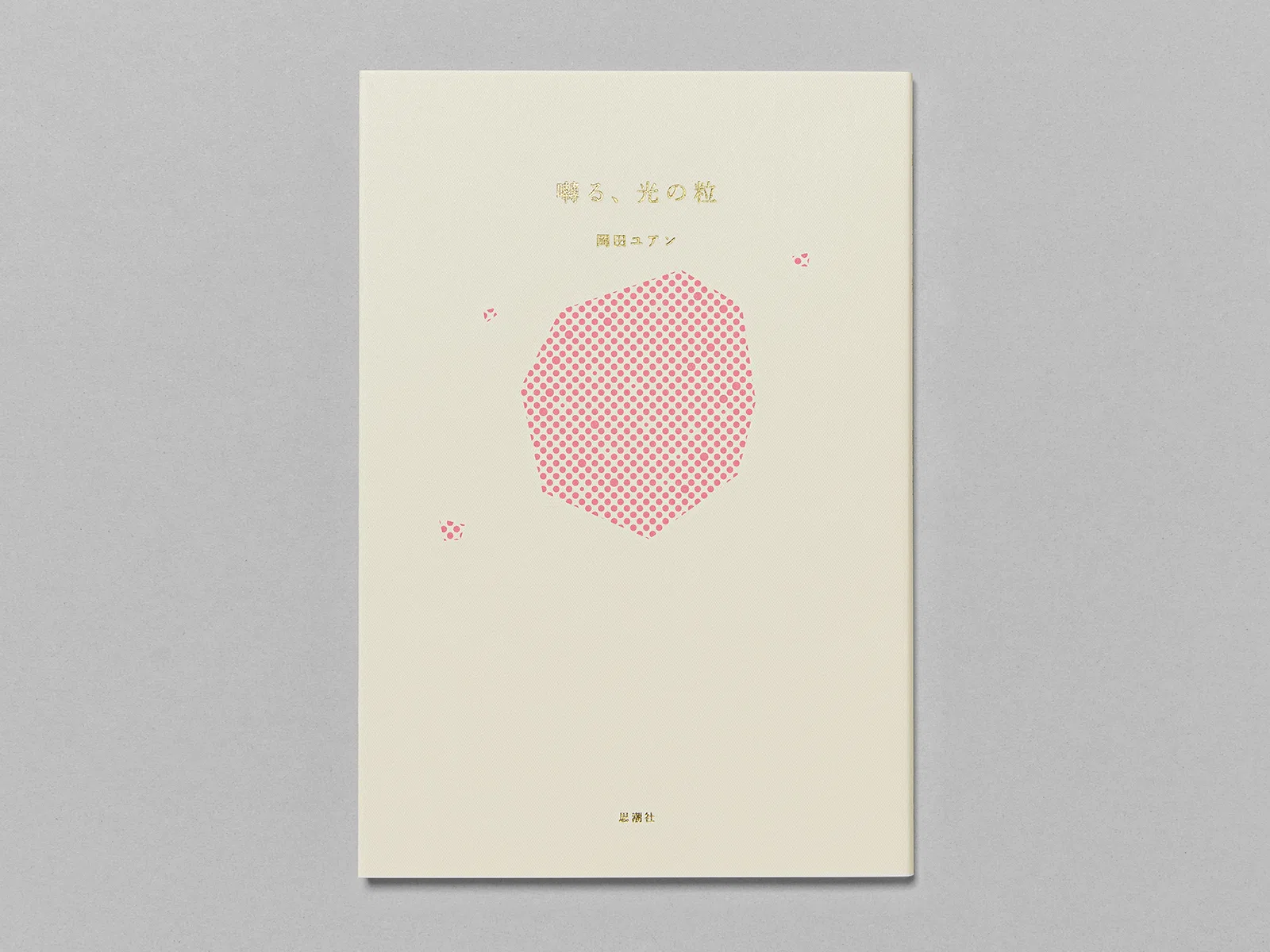 岡田ユアンの第四詩集『囀る、光の粒』は、すでにそこに在った光の粒子が降り注いでいる。光の粒は言葉たちだ。均質で細かな菱形のエンボスを持つ「ミニッツGA ホワイト」をカバーに使い、光の粒の世界を拡張した。表紙を開くと見返しの「ミニッツGA シトロン」が、祝祭の朝のように始まりを宣誓する。扉の「NTパイル」は本という紙の集合体の中で物質感を放ち、八角形の光の残像とともに幕があく。(長澤昌彦さん)