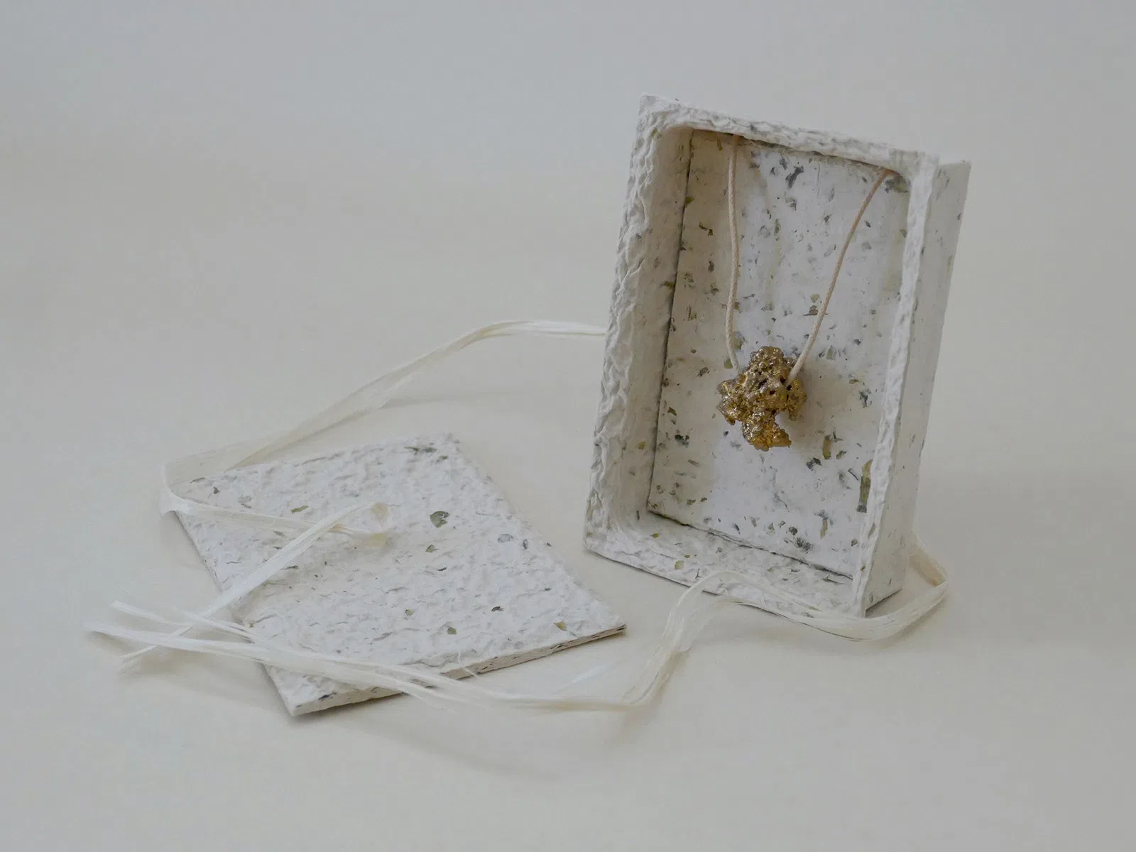 そんな特殊なジュエリーのパッケージは、竹パルプ100%の「竹紙100ナチュラル」を用いたパルプモールド成形で製作しました。竹は昔から日本人にとって伝統的で欠かせない植物でしたが、近年は竹の消費量が減少したことで、竹林が循環の輪から外れ、竹の処分が課題となっています。