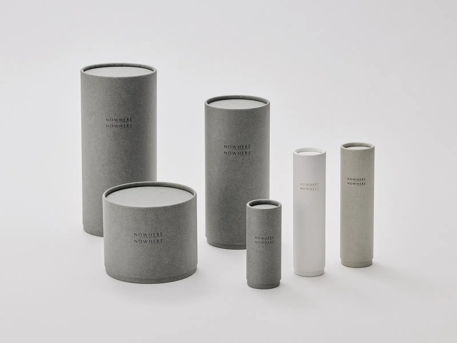 構想段階でジェンダーレスでタイムレスなブランドにしたいとの要望があったのでパッケージは性別や年齢、趣味趣向を出来るだけ問わない無機質な表情を持たせたいと、あらゆる紙を探していました。当初は違う複数の紙の組み合わせで検討していたのですが、入稿寸前で、竹尾さんから新発売のご案内を受け全ての紙管を「FAVINI TOKYO」で揃える事にしました。