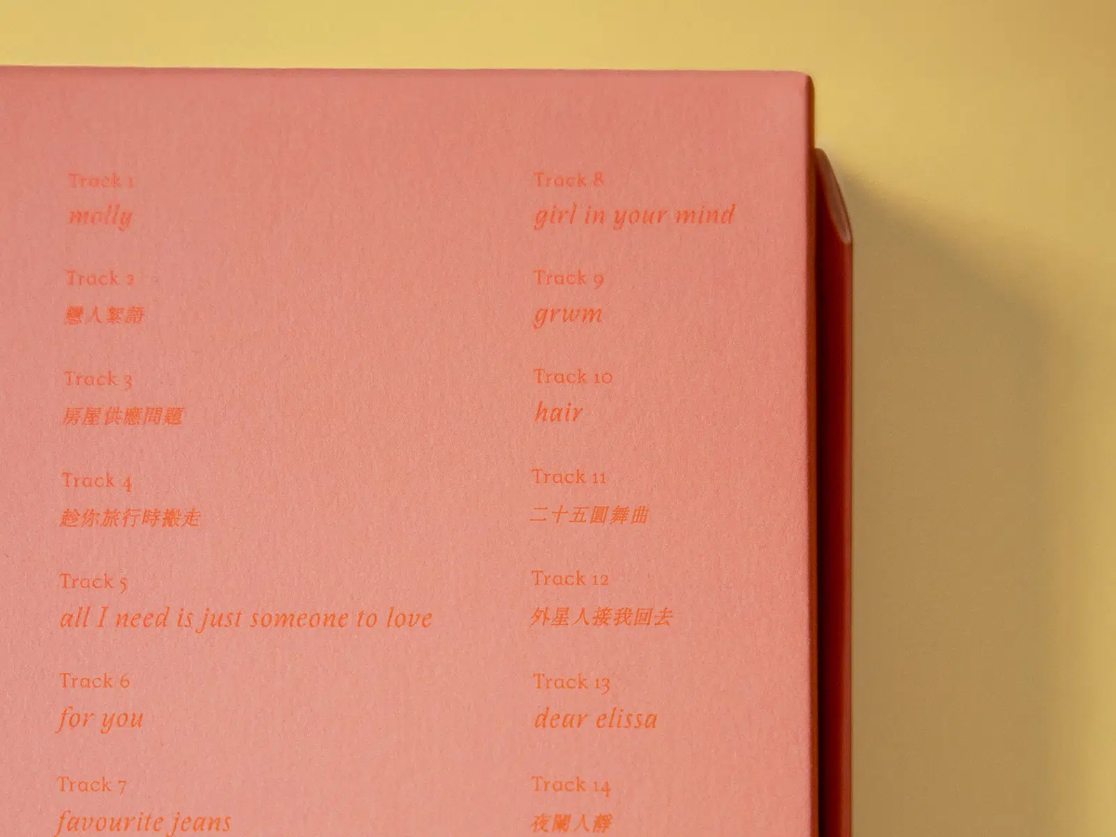 香港の歌手 Moonさんは、温かく落ち着いた歌声の持ち主です。そんな彼女の初めてのソロアルバムのデザインを手がけるにあたり、印刷や加工を通して、その心地よさを形にすることを意識しました。
