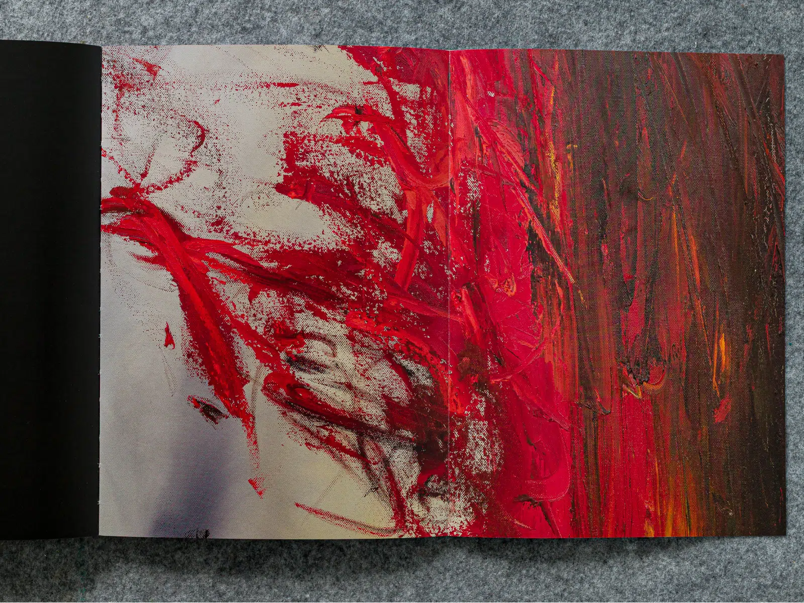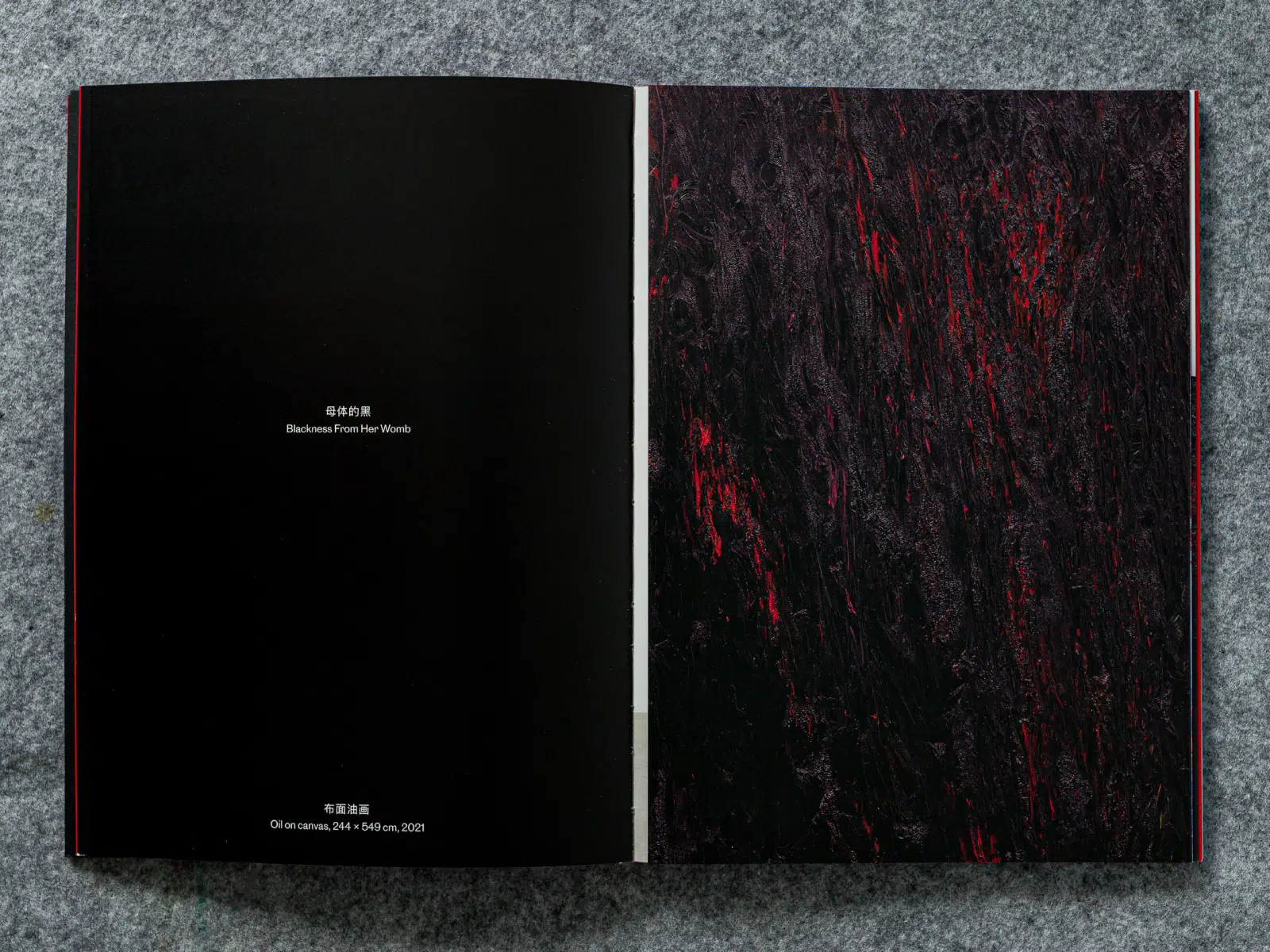 図録には視覚効果だけでなく物質感と力強さをもたせたいと思い、深い黒と濃い赤の紙をベースとして意図的かつ慎重に使うよう構想しました。「スーパーコントラスト」も「ビオトープGA-FS」も、顔料のような深みのある力強さ、それでいて優雅なしなやかさをもたらしてくれました。色紙は数年で色あせることがありますが、二つの紙は今もその色合いを保っています。(Shi Yuanさん)