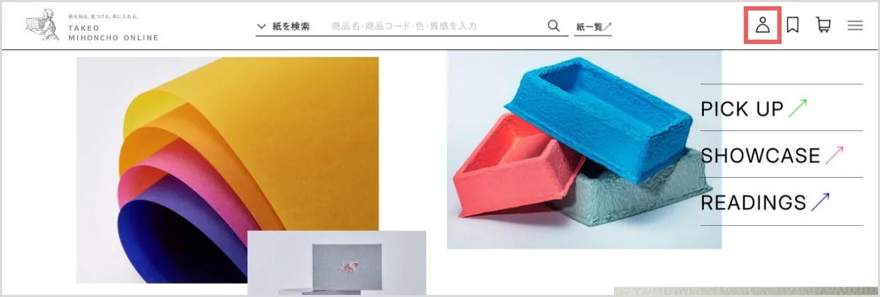 ヘッダー右側にある人型のアイコンをクリックするとログイン画面に遷移します。
